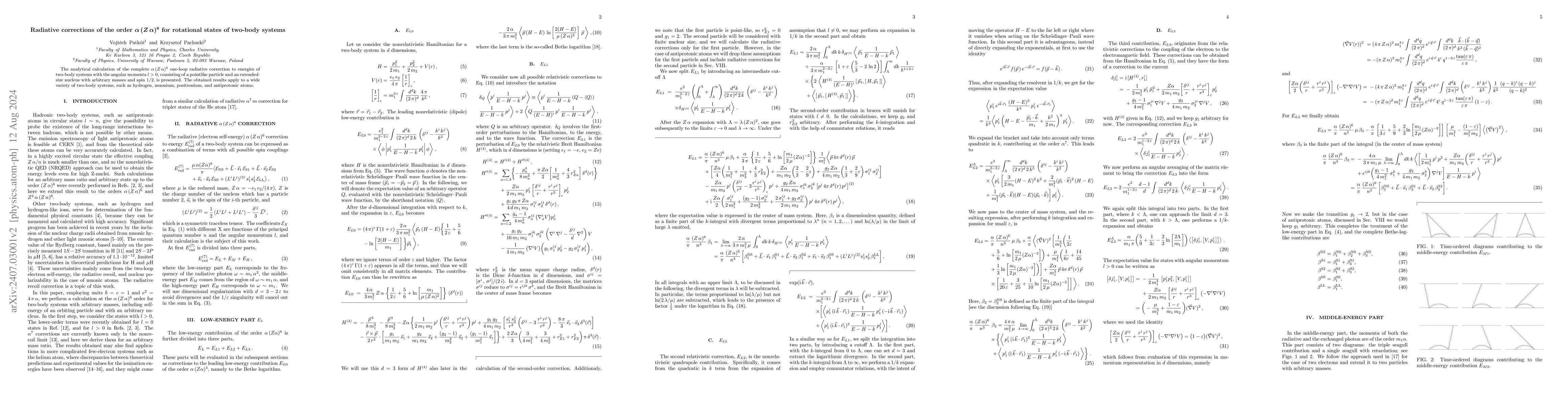 This paper presents an analytical calculation of the $\alpha\,(Z\,\alpha)^6$ one-loop radiative correction for rotational states in two-body systems with $l>0$, applicable to systems like hydrogen and positronium. The findings extend to diverse atomic structures with arbitrary masses and spin 1/2.