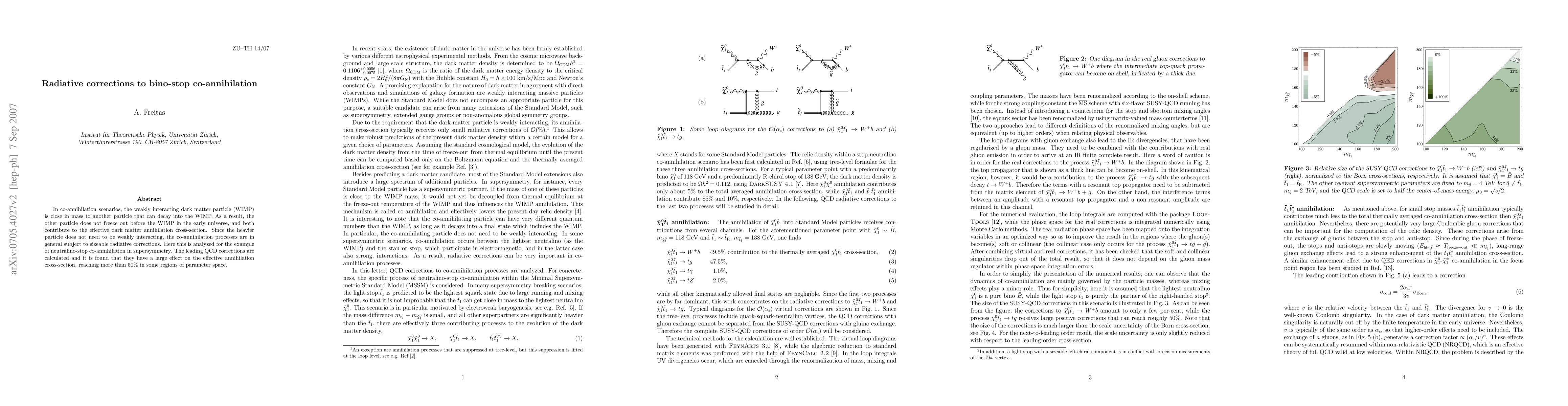 In co-annihilation scenarios, the weakly interacting dark matter particle (WIMP) is close in mass to another particle that can decay into the WIMP. As a result, both particles freeze out at roughly the same time in the early universe, and both contribute to the effective dark matter annihilation cross-section. Since the heavier particle does not need to be weakly interacting, the co-annihilation processes are in general subject to sizeable radiative corrections. Here this is analyzed for the example of neutralino-stop co-annihilation in supersymmetry. The leading QCD corrections are calculated and it is found that they have a large effect on the effective annihilation cross-section, reaching more than 50% in some regions of parameter space.