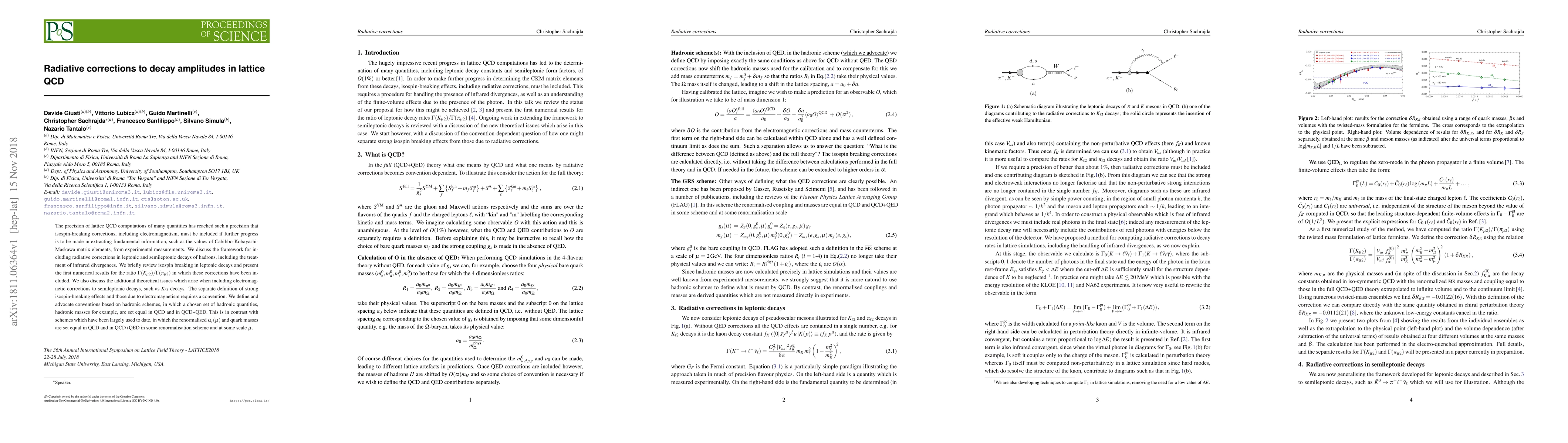 This paper discusses the inclusion of radiative corrections in lattice QCD computations to improve precision in extracting fundamental information from experimental measurements, focusing on leptonic and semileptonic decays. It presents numerical results for the decay ratio $\Gamma(K_{\mu2})/\Gamma(\pi_{\mu2})$ with these corrections and introduces conventions for separating strong isospin-breaking effects from electromagnetic effects.