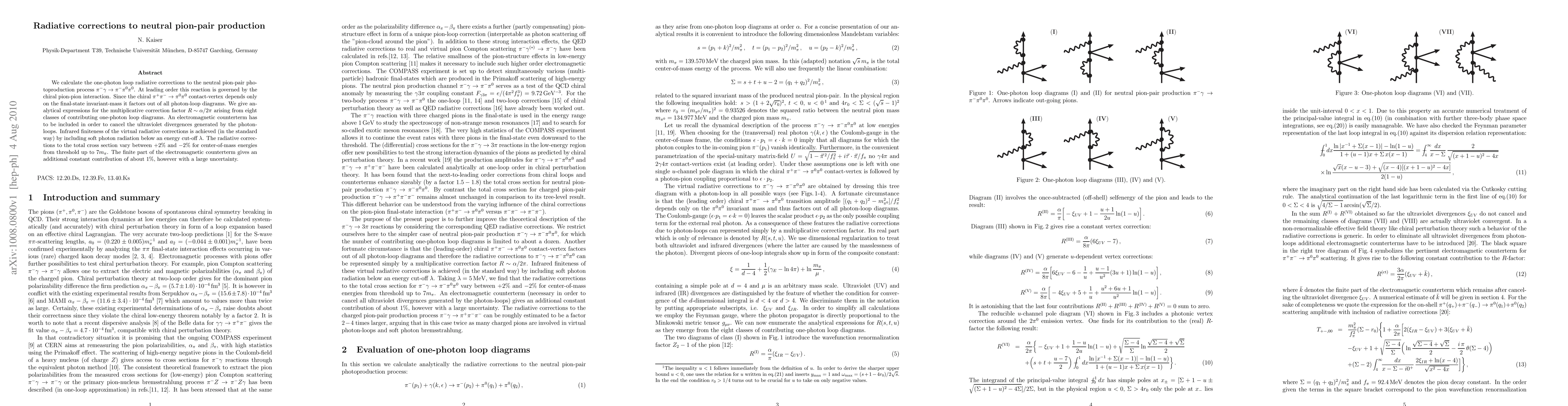 We calculate the one-photon loop radiative corrections to the neutral pion-pair photoproduction process $\pi^-\gamma \to \pi^-\pi^0\pi^0$. At leading order this reaction is governed by the chiral pion-pion interaction. Since the chiral $\pi^+\pi^-\to\pi^0\pi^0$ contact-vertex depends only on the final-state invariant-mass it factors out of all photon-loop diagrams. We give analytical expressions for the multiplicative correction factor $R\sim \alpha/2\pi$ arising from eight classes of contributing one-photon loop diagrams. An electromagnetic counterterm has to be included in order to cancel the ultraviolet divergences generated by the photon-loops. Infrared finiteness of the virtual radiative corrections is achieved (in the standard way) by including soft photon radiation below an energy cut-off $\lambda$. The radiative corrections to the total cross section vary between $+2\%$ and $-2\%$ for center-of-mass energies from threshold up to $7m_\pi$. The finite part of the electromagnetic counterterm gives an additional constant contribution of about $1\%$, however with a large uncertainty.