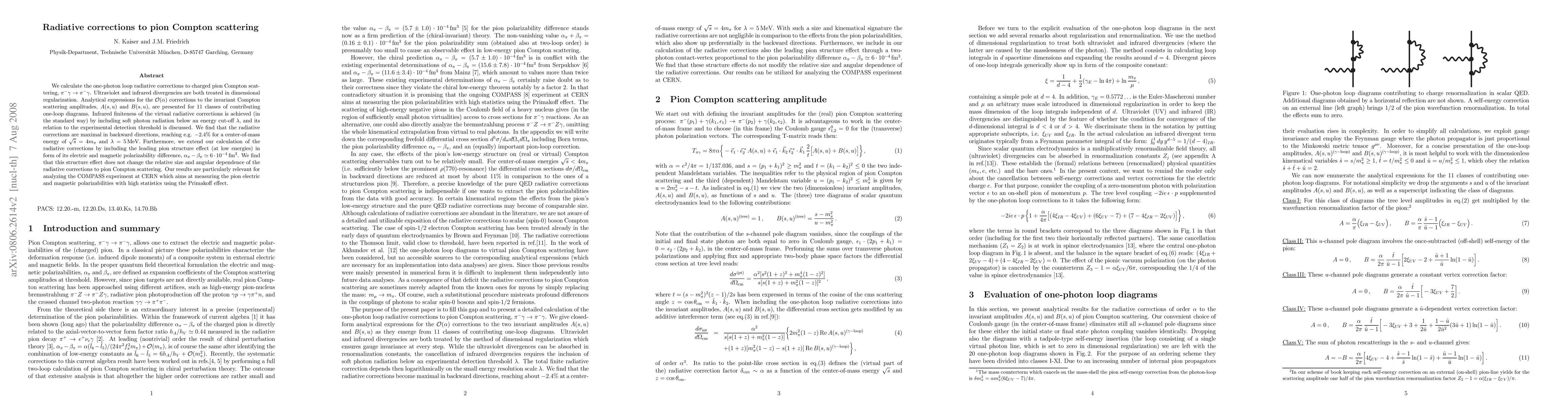 This paper calculates radiative corrections to pion Compton scattering, $\pi^- \gamma \to \pi^- \gamma$, finding maximal corrections of -2.4% in backward directions for specific energies. The study includes leading pion structure effects and is relevant for the COMPASS experiment at CERN.