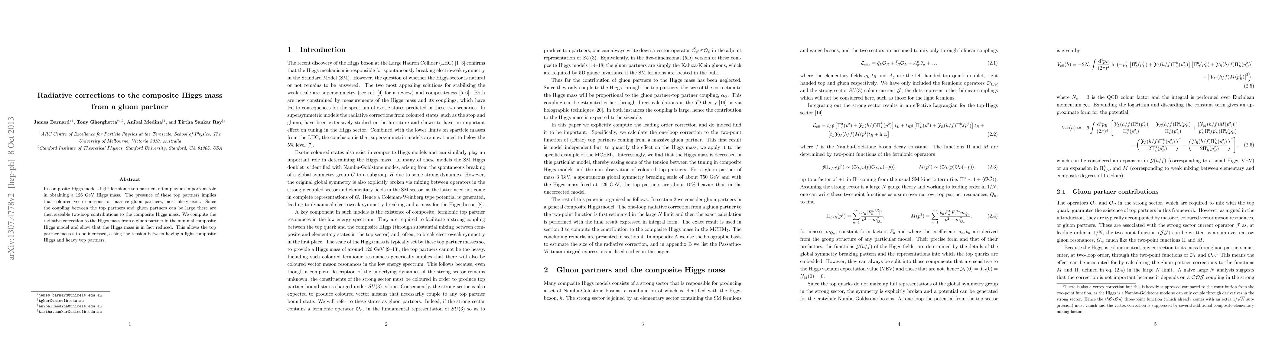 In composite Higgs models light fermionic top partners often play an important role in obtaining a 126 GeV Higgs mass. The presence of these top partners implies that coloured vector mesons, or massive gluon partners, most likely exist. Since the coupling between the top partners and gluon partners can be large there are then sizeable two-loop contributions to the composite Higgs mass. We compute the radiative correction to the Higgs mass from a gluon partner in the minimal composite Higgs model and show that the Higgs mass is in fact reduced. This allows the top partner masses to be increased, easing the tension between having a light composite Higgs and heavy top partners.