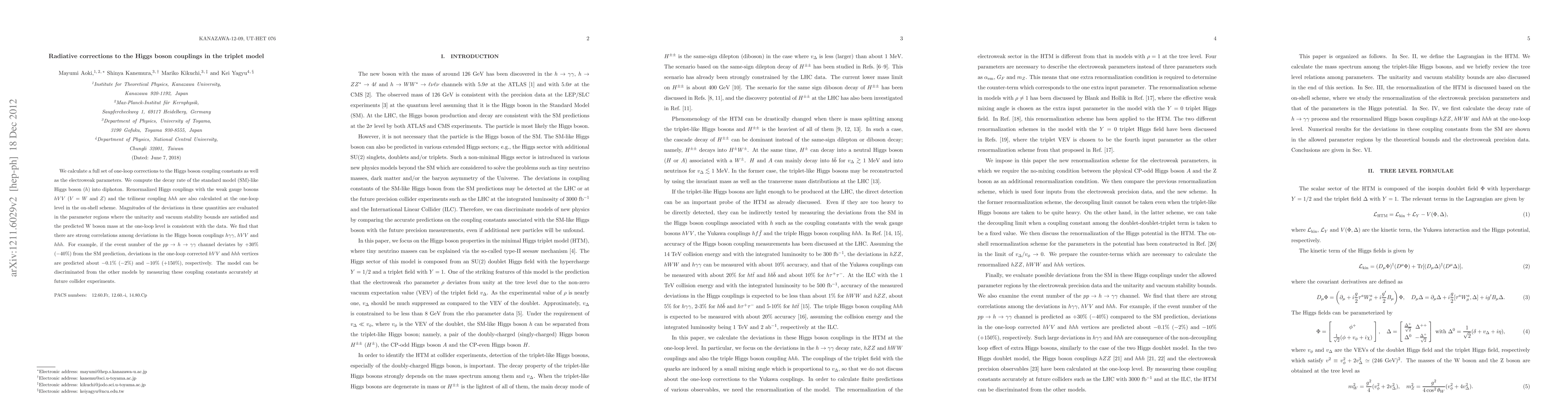 This paper calculates one-loop radiative corrections to Higgs boson couplings in the triplet model, finding strong correlations among deviations in $h\gamma\gamma$, $hVV$, and $hhh$ couplings. The model can be distinguished from others by precise measurements of these couplings at future colliders.