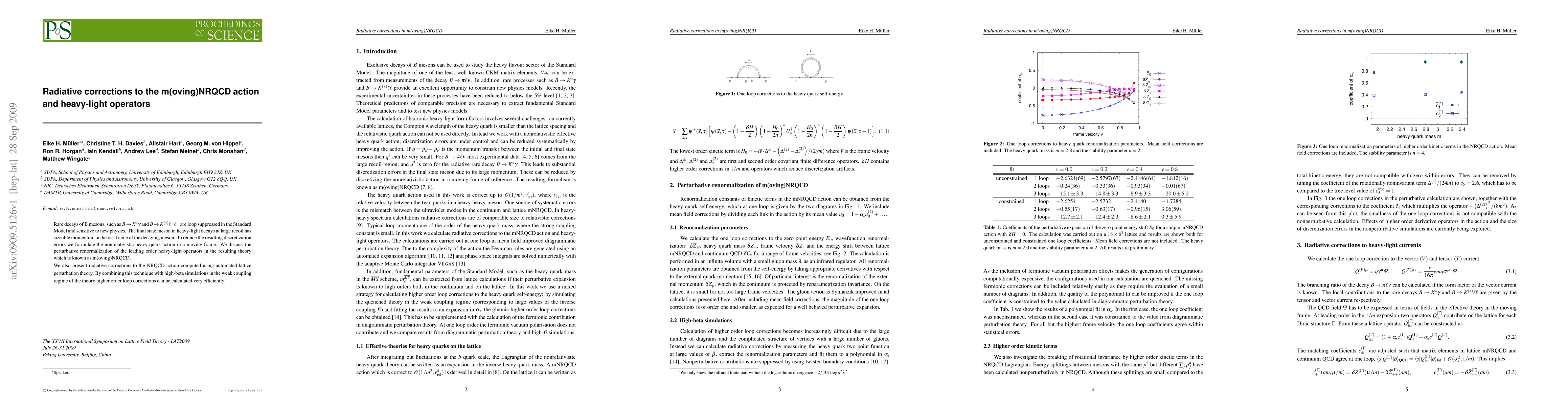 Rare decays of B mesons, such as B \to K^*\gamma and B\to K^{(*)}\ell^+\ell^- are loop suppressed in the Standard Model and sensitive to new physics. The final state meson in heavy-light decays at large recoil has sizeable momentum in the rest frame of the decaying meson. To reduce the resulting discretization errors we formulate the nonrelativistic heavy quark action in a moving frame. We discuss the perturbative renormalization of the leading order heavy-light operators in the resulting theory which is known as m(oving)NRQCD. We also present radiative corrections to the NRQCD action computed using automated lattice perturbation theory. By combining this technique with high-beta simulations in the weak coupling regime of the theory higher order loop corrections can be calculated very efficiently.