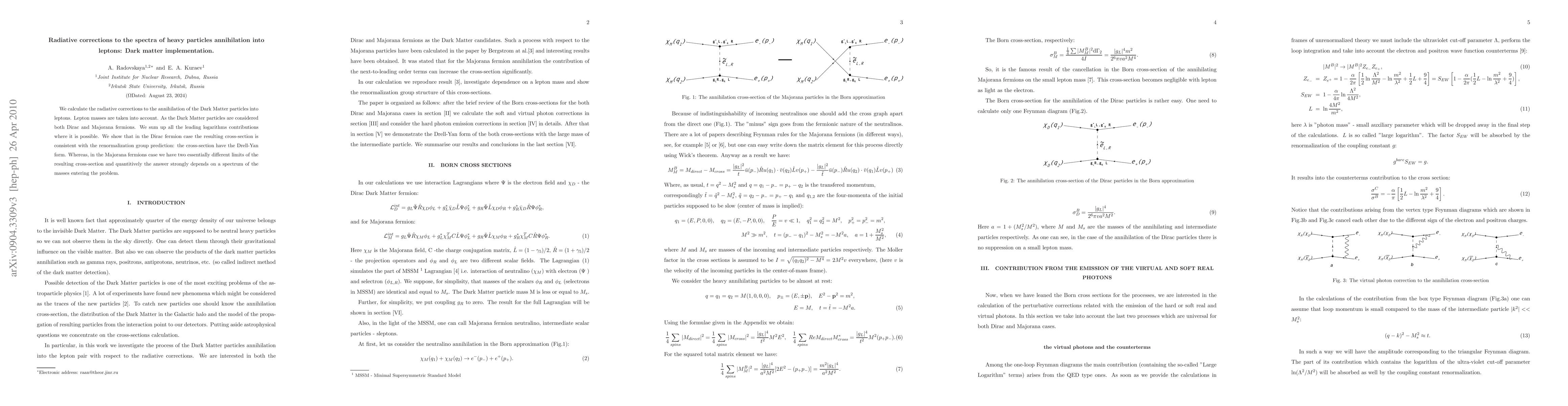 Researchers calculate radiative corrections to Dark Matter particle annihilation into leptons, finding consistency with renormalization group predictions in the Dirac fermion case and significant variation in the Majorana fermions case.