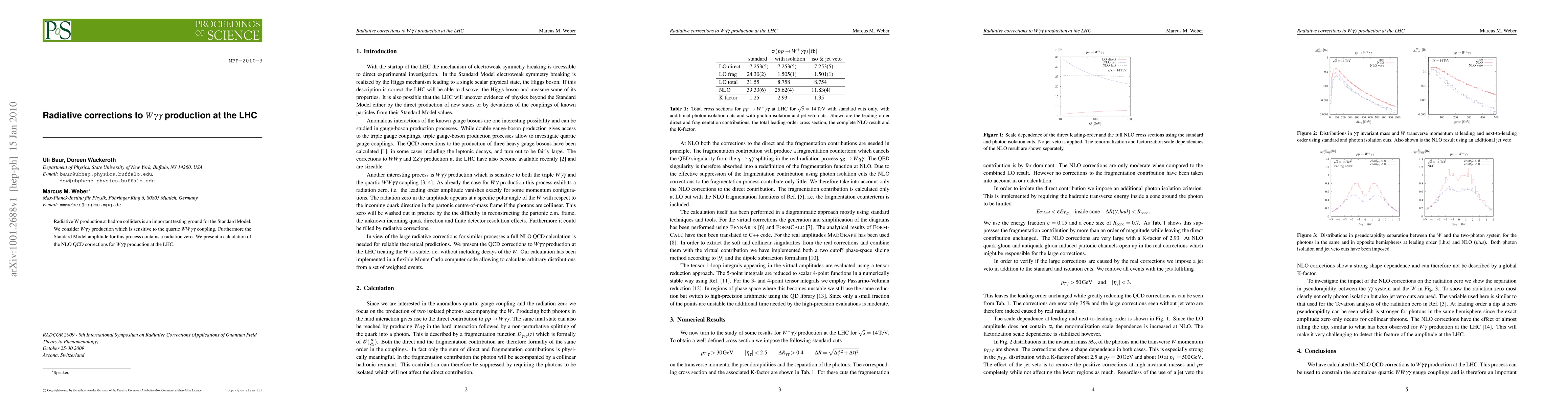 This paper investigates the radiative corrections for W gamma gamma production at the LHC, focusing on the quartic WW gamma gamma coupling and the Standard Model's zero in its amplitude. The authors provide a detailed calculation of the next-to-leading order (NLO) QCD corrections for this process.