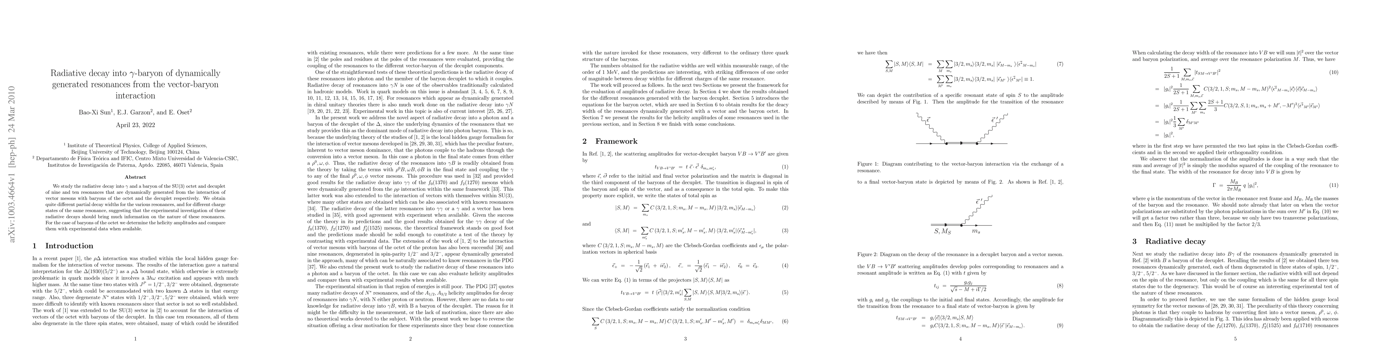 This paper investigates the radiative decay of dynamically generated resonances from vector-baryon interactions into gamma and baryon states. It finds distinct partial decay widths for different resonances and charge states, indicating valuable experimental insights into resonance nature.