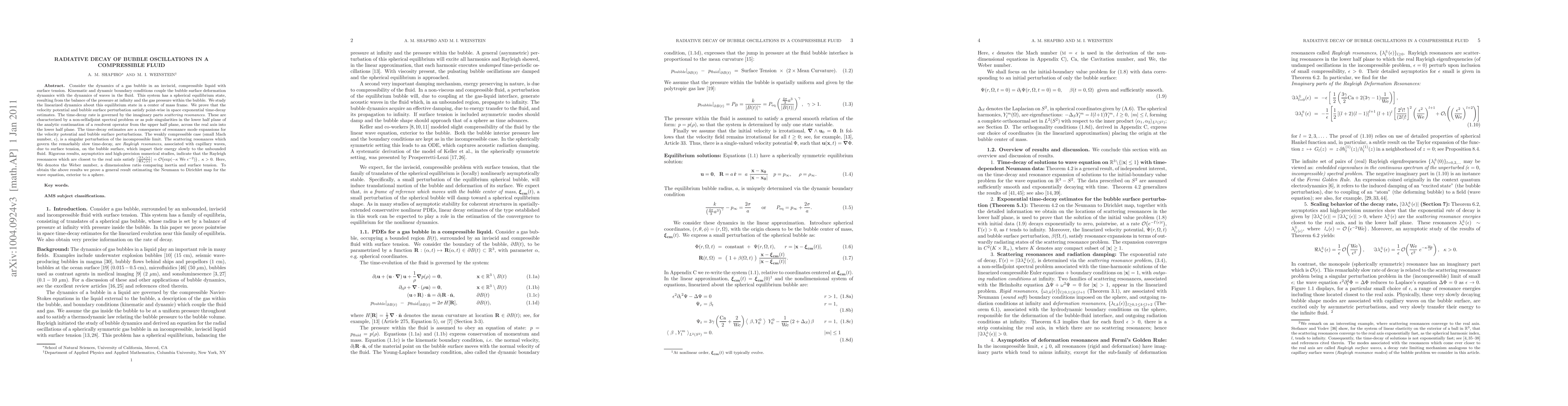 This paper investigates the radiative decay of oscillations in a gas bubble within an inviscid, compressible liquid, demonstrating that the decay rate is influenced by scattering resonances, specifically Rayleigh resonances, and is exponentially slow for small compressibility. The study also proves a general result estimating the Neumann to Dirichlet map for the wave equation exterior to a sphere.