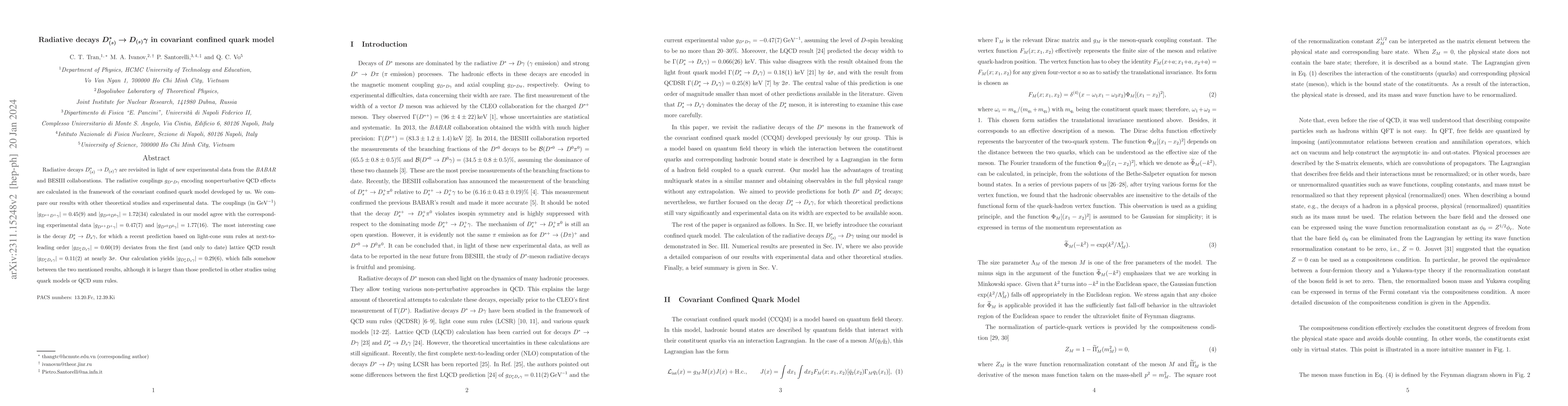 Radiative decays $D^*_{(s)}\to D_{(s)}\gamma$ are revisited in light of new experimental data from the \textit{BABAR} and BESIII collaborations. The radiative couplings $g_{D^*D\gamma}$ encoding nonperturbative QCD effects are calculated in the framework of the covariant confined quark model developed by us. We compare our results with other theoretical studies and experimental data. The couplings (in $\textrm{GeV}^{-1}$) $|g_{D^{*+}D^+\gamma}| = 0.45(9)$ and $|g_{D^{*0}D^0\gamma}| = 1.72(34)$ calculated in our model agree with the corresponding experimental data $|g_{D^{*+}D^+\gamma}|=0.47(7)$ and $|g_{D^{*0}D^0\gamma}|=1.77(16)$. The most interesting case is the decay $D^*_s\to D_s\gamma$, for which a recent prediction based on light-cone sum rules at next-to-leading order $|g_{D^*_s D_s\gamma}|=0.60(19)$ deviates from the first (and only to date) lattice QCD result $|g_{D^*_s D_s\gamma}|=0.11(2)$ at nearly $3\sigma$. Our calculation yields $|g_{D^*_s D_s\gamma}|=0.29(6)$, which falls somehow between the two mentioned results, although it is larger than those predicted in other studies using quark models or QCD sum rules.