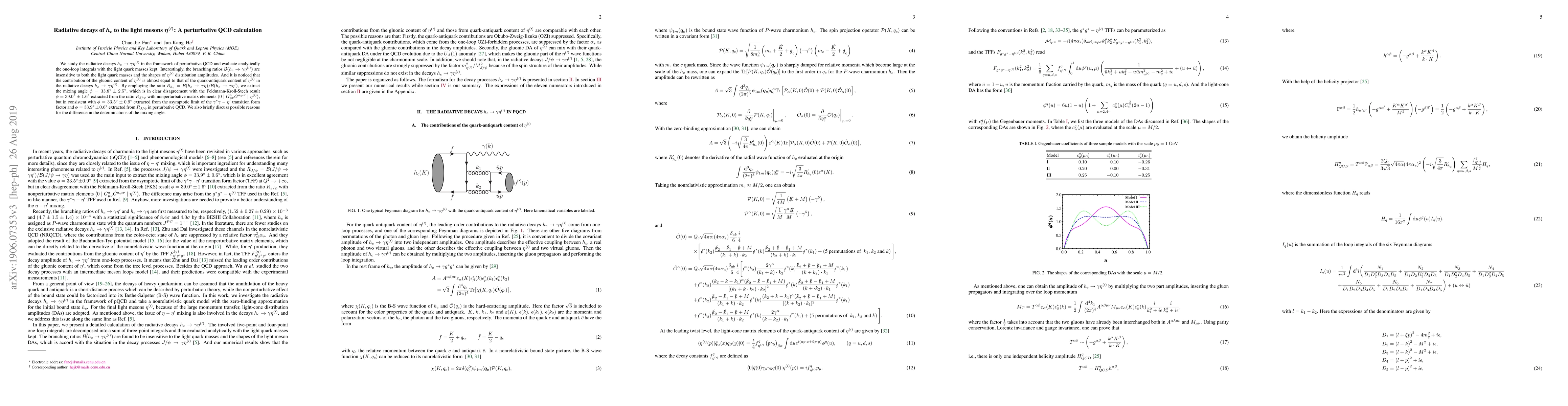 Researchers studied the decay of $h_{c}$ to $rac{ ext{light mesons}}{ ext{photons}}$ using perturbative QCD and found that branching ratios depend on quark masses less than expected. They also found nearly equal contributions from gluonic and quark-antiquark content in light meson decays.