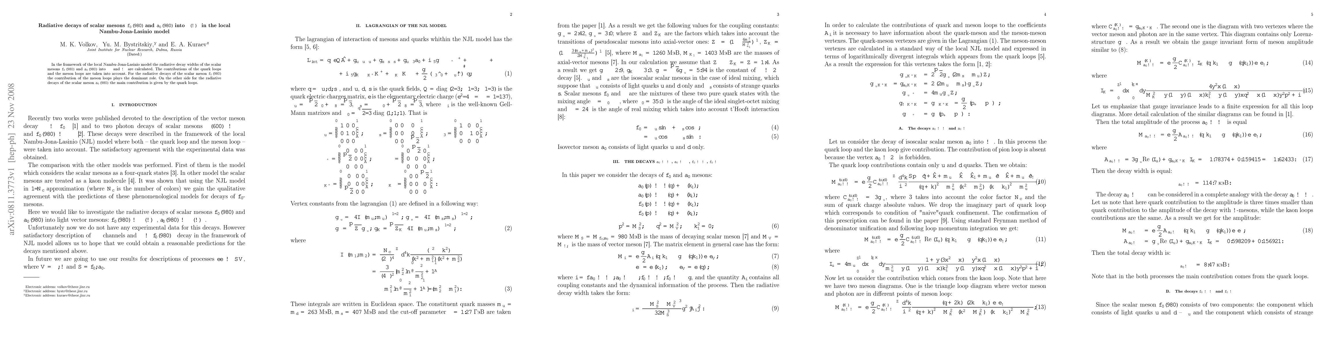 This paper calculates the radiative decay widths of scalar mesons $f_0(980)$ and $a_0(980)$ into $\rho\gamma$ and $\omega \gamma$ using the local Nambu-Jona-Lasinio model, finding that meson loops dominate the decay of $f_0(980)$ while quark loops are more significant for $a_0(980)$.