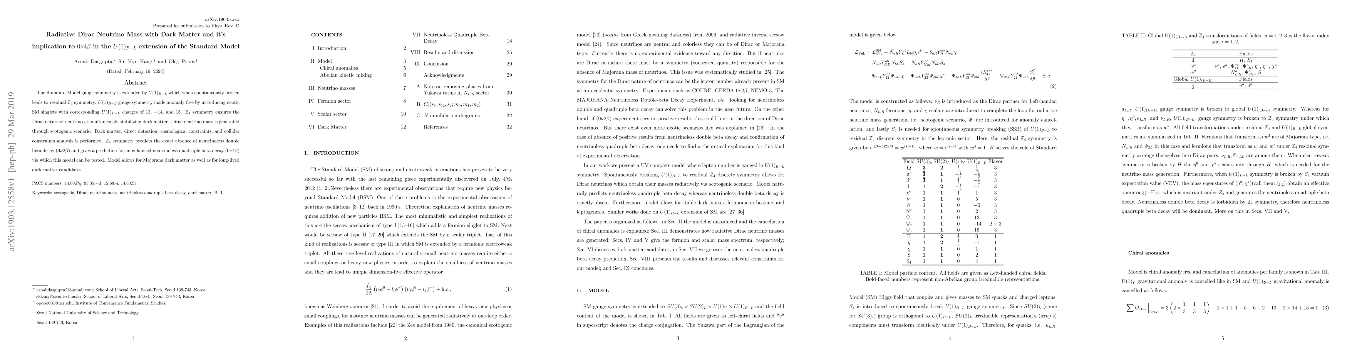 This paper extends the Standard Model with $U(1)_{B-L}$ symmetry, generating radiative Dirac neutrino masses and predicting enhanced $0\nu 4\beta$ decay via a scotogenic mechanism, while ensuring the absence of $0\nu 2\beta$ decay and stabilizing dark matter under $\mathbb{Z}_4$ symmetry.