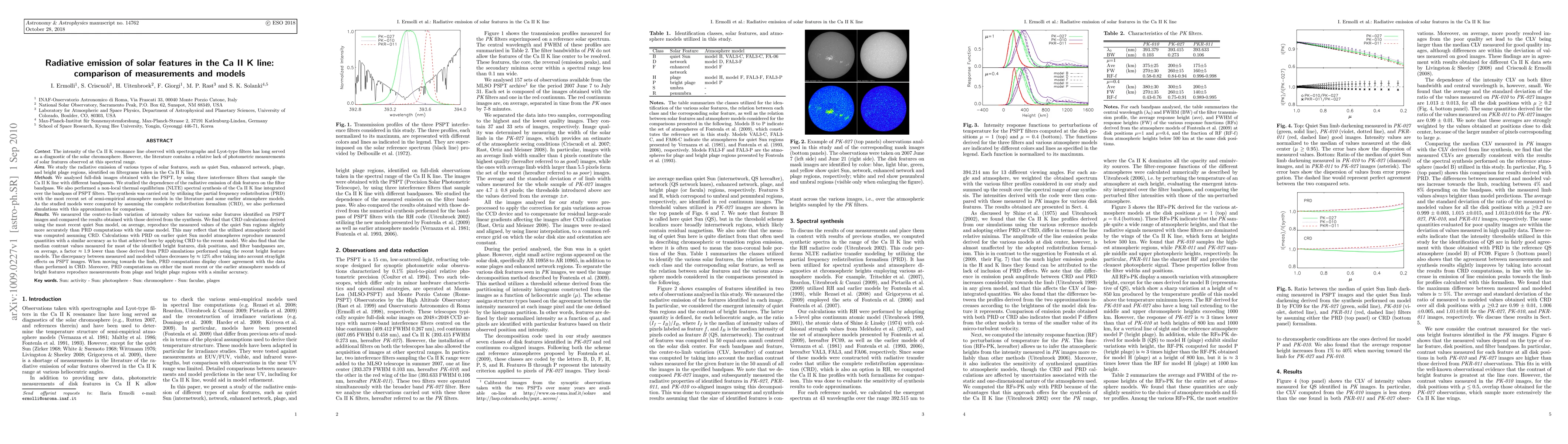 We study the radiative emission of various types of solar features, such as quiet Sun, enhanced network, plage, and bright plage regions, identified on filtergrams taken in the Ca II K line. We analysed fulldisk images obtained with the PSPT, by using three interference filters that sample the Ca II K line with different bandpasses. We studied the dependence of the radiative emission of disk features on the filter bandpass. We also performed a NLTE spectral synthesis of the Ca II K line integrated over the bandpass of PSPT filters. The synthesis was carried out by utilizing both the PRD and CRD with the most recent set of semi empirical atmosphere models in the literature and some earlier atmosphere models. We measured the CLV of intensity values for various solar features identified on PSPT images and compared the results obtained with those derived from the synthesis. We find that CRD calculations derived using the most recent quiet Sun model, on average, reproduce the measured values of the quiet Sun regions slightly more accurately than PRD computations with the same model. This may reflect that the utilized atmospheric model was computed assuming CRD. Calculations with PRD on earlier quiet Sun model atmospheres reproduce measured quantities with a similar accuracy as to that achieved here by applying CRD to the recent model. We also find that the median contrast values measured for most of the identified bright features, disk positions, and filter widths are, on average, a factor 1.9 lower than those derived from PRD simulations performed using the recent bright feature models. The discrepancy between measured and modeled values decreases by 12% after taking into account straylight effects on PSPT images. PRD computations on either the most recent or the earlier atmosphere models of bright features reproduce measurements from plage and bright plage regions with a similar accuracy.