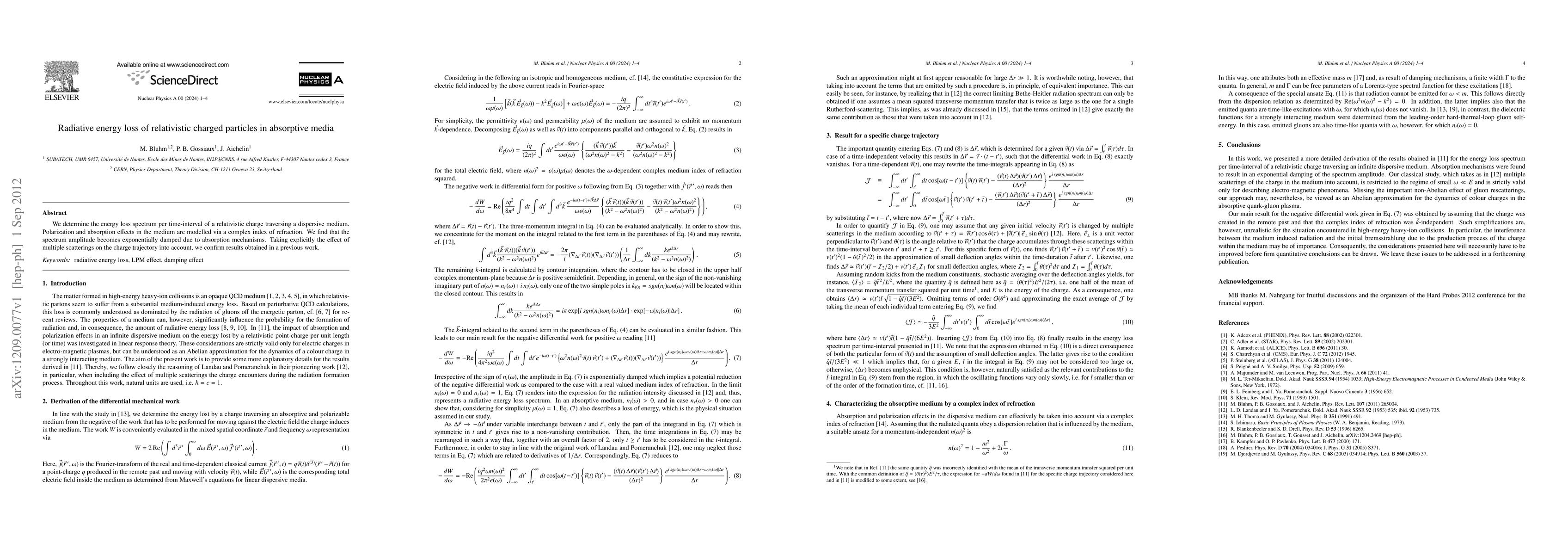 The research derives the energy loss spectrum of a fast-moving charged particle passing through a medium with absorption and polarization effects. It confirms, via multiple scattering considerations, that the energy loss amplitude decreases exponentially due to absorption mechanisms.