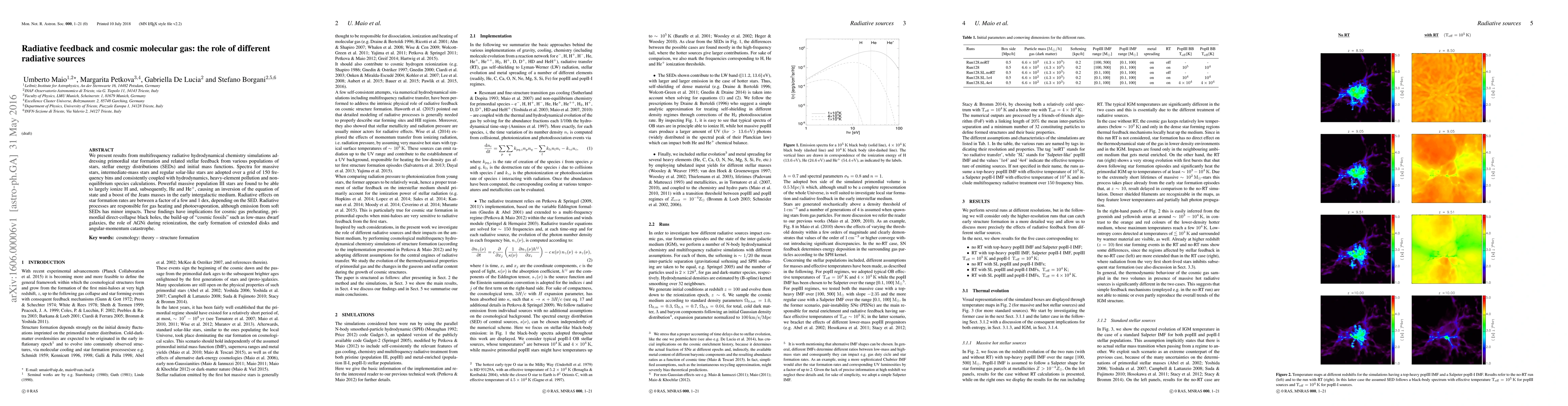 This paper investigates the effects of radiative feedback from different stellar populations on cosmic molecular gas, finding that massive stars significantly ionize hydrogen and helium, influencing early intergalactic medium dynamics. Radiative processes from various stellar energy distributions impact star formation rates and gas heating, with implications for cosmic gas preheating and early galaxy formation.