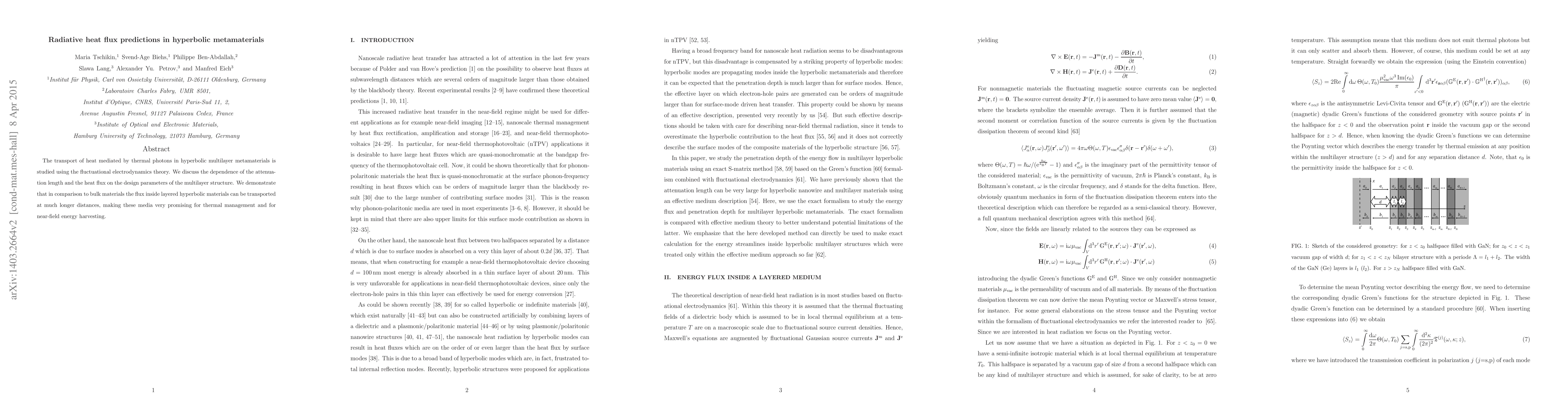This study explores heat transfer in hyperbolic metamaterials using fluctuational electrodynamics, revealing that thermal photon-mediated flux travels significantly farther compared to bulk materials, indicating potential applications in thermal management and energy harvesting.