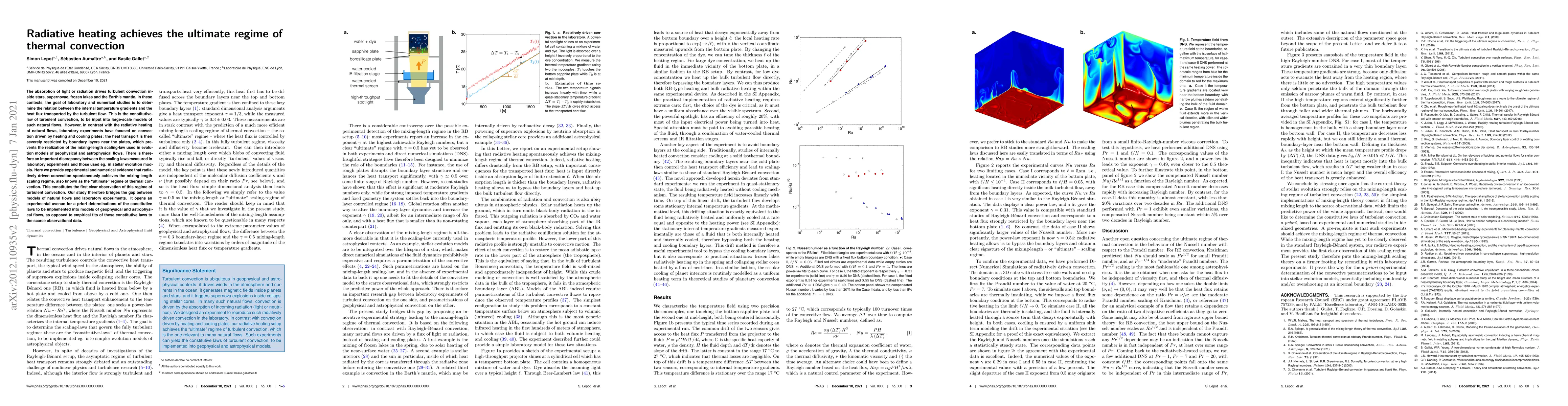 This paper demonstrates that radiative heating can achieve the ultimate regime of thermal convection, known as the mixing-length scaling regime, observed for the first time in experiments. This finding bridges the gap between laboratory experiments and natural flows, providing a basis for a priori determination of constitutive laws for geophysical and astrophysical models.