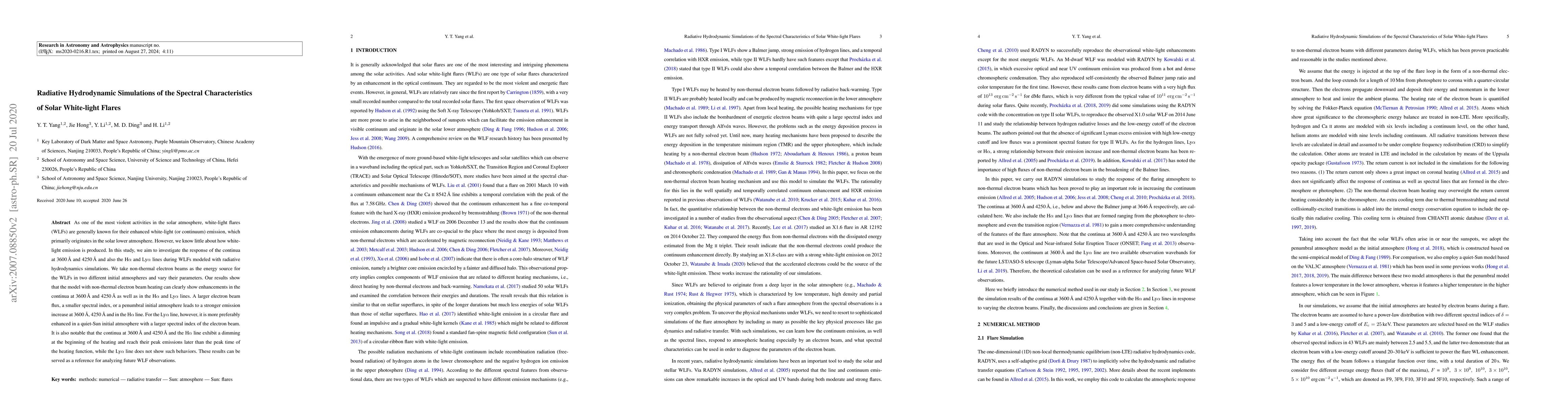 As one of the most violent activities in the solar atmosphere, white-light flares (WLFs) are generally known for their enhanced white-light (or continuum) emission, which primarily originates in the solar lower atmosphere. However, we know little about how white-light emission is produced. In this study, we aim to investigate the response of the continua at 3600\AA\ and 4250\AA\ and also the H$\alpha$ and Ly$\alpha$ lines during WLFs modeled with radiative hydrodynamics simulations. We take non-thermal electron beams as the energy source for the WLFs in two different initial atmospheres and vary their parameters. Our results show that the model with non-thermal electron beam heating can clearly show enhancements in the continua at 3600\AA\ and 4250\AA\ as well as in the H$\alpha$ and Ly$\alpha$ lines. A larger electron beam flux, a smaller spectral index, or a penumbral initial atmosphere leads to a stronger emission increase at 3600\AA, 4250\AA\ and in the H$\alpha$ line. For the Ly$\alpha$ line, however, it is more preferably enhanced in a quiet-Sun initial atmosphere with a larger spectral index of the electron beam. It is also notable that the continua at 3600\AA\ and 4250\AA\ and the H$\alpha$ line exhibit a dimming at the beginning of the heating and reach their peak emissions later than the peak time of the heating function, while the Ly$\alpha$ line does not show such behaviors. These results can be served as a reference for analyzing future WLF observations.