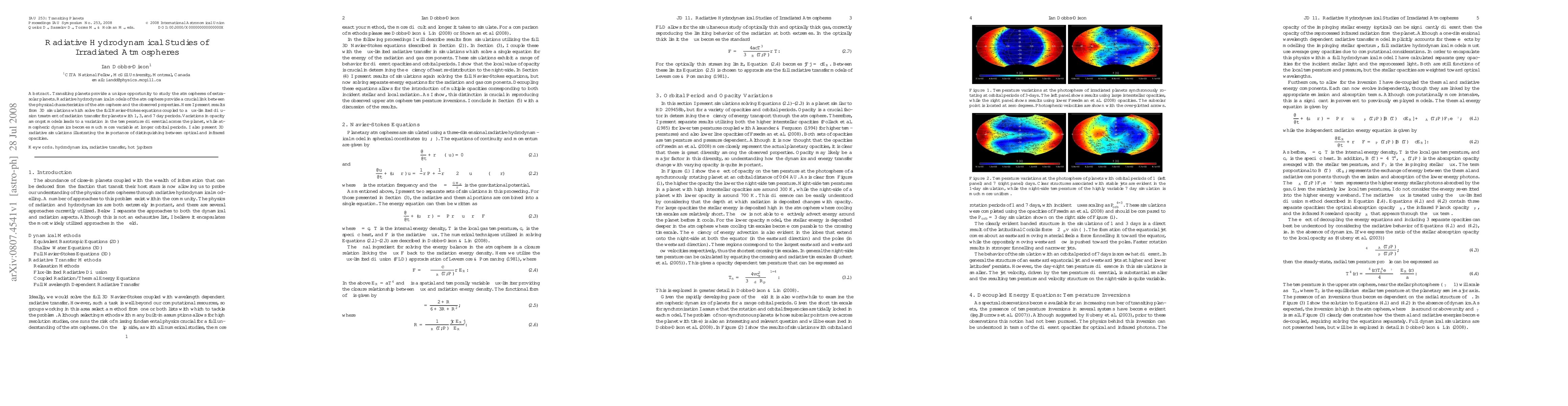 Transiting planets provide a unique opportunity to study the atmospheres of extra-solar planets. Radiative hydrodynamical models of the atmosphere provide a crucial link between the physical characteristics of the atmosphere and the observed properties. Here I present results from 3D simulations which solve the full Navier-Stokes equations coupled to a flux-limited diffusion treatment of radiation transfer for planets with 1, 3, and 7 day periods. Variations in opacity amongst models leads to a variation in the temperature differential across the planet, while atmospheric dynamics becomes much more variable at longer orbital periods. I also present 3D radiative simulations illustrating the importance of distinguishing between optical and infrared opacities.