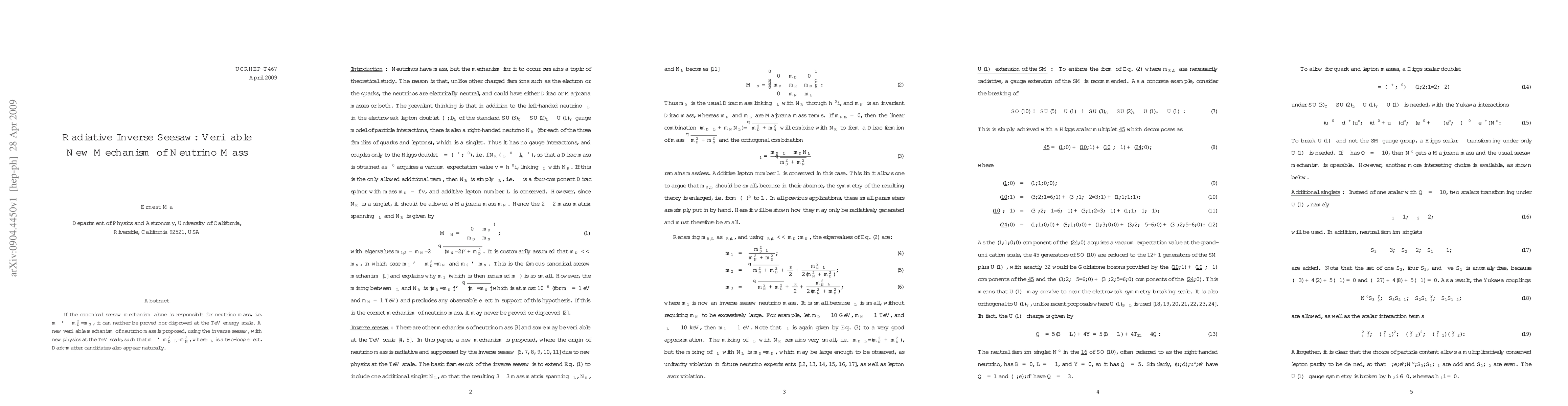The paper proposes a new "radiative inverse seesaw" mechanism for neutrino mass generation, offering a verifiable alternative to the canonical seesaw mechanism at the TeV scale. This model introduces new physics at the TeV scale and predicts the appearance of dark-matter candidates.