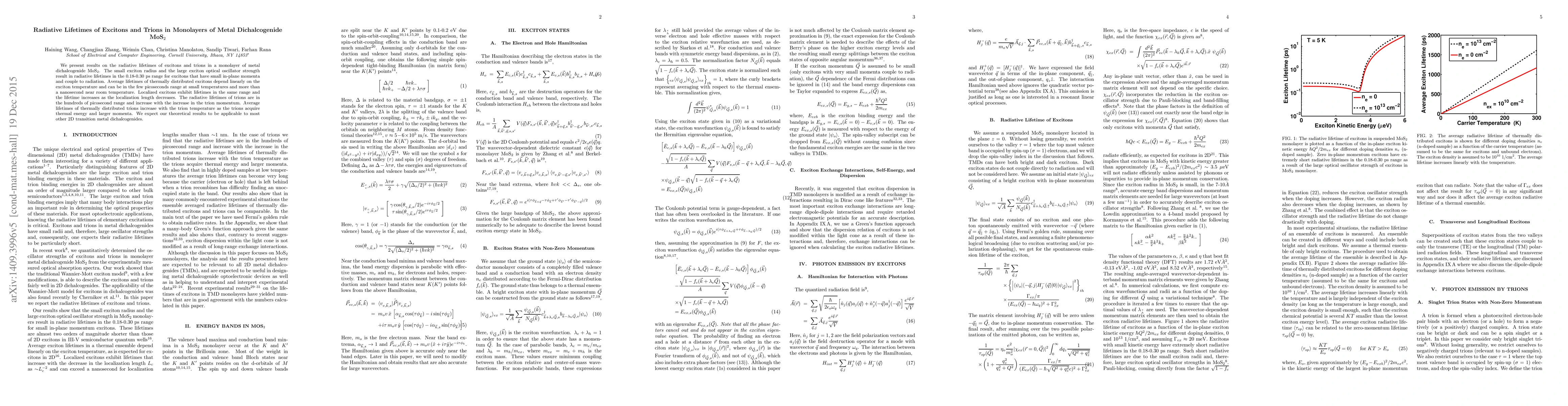 This study investigates the radiative lifetimes of excitons and trions in monolayer MoS2, finding exciton lifetimes between 0.18-0.30 ps for small momenta and increasing with localization. Trion lifetimes are hundreds of picoseconds, growing with momentum and temperature.