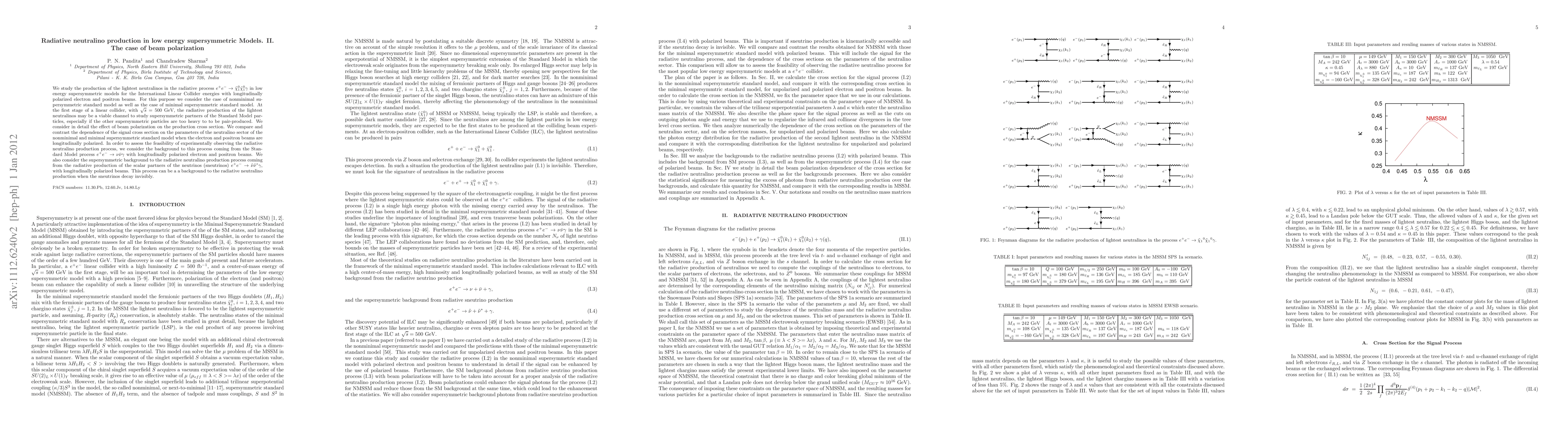 This paper investigates the radiative production of the lightest neutralinos in low energy supersymmetric models at the International Linear Collider, focusing on the impact of electron and positron beam polarization. It compares the neutralino production cross section in both nonminimal and minimal supersymmetric models, assessing the feasibility of observing this process amidst Standard Model and supersymmetric backgrounds.