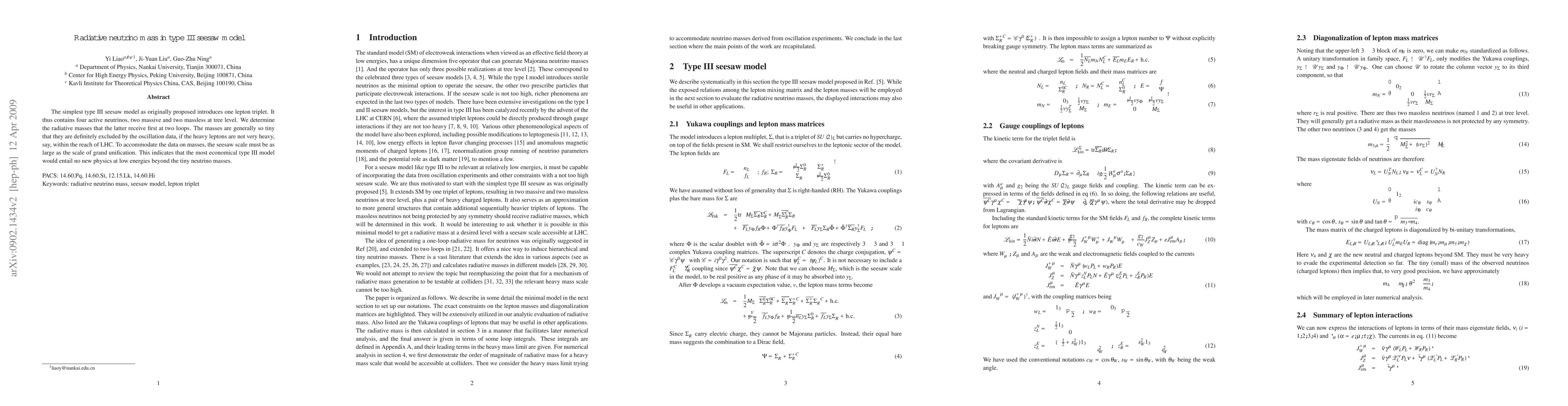 The simplest type III seesaw model as originally proposed introduces one lepton triplet. It thus contains four active neutrinos, two massive and two massless at tree level. We determine the radiative masses that the latter receive first at two loops. The masses are generally so tiny that they are definitely excluded by the oscillation data, if the heavy leptons are not very heavy, say, within the reach of LHC. To accommodate the data on masses, the seesaw scale must be as large as the scale of grand unification. This indicates that the most economical type III model would entail no new physics at low energies beyond the tiny neutrino masses.