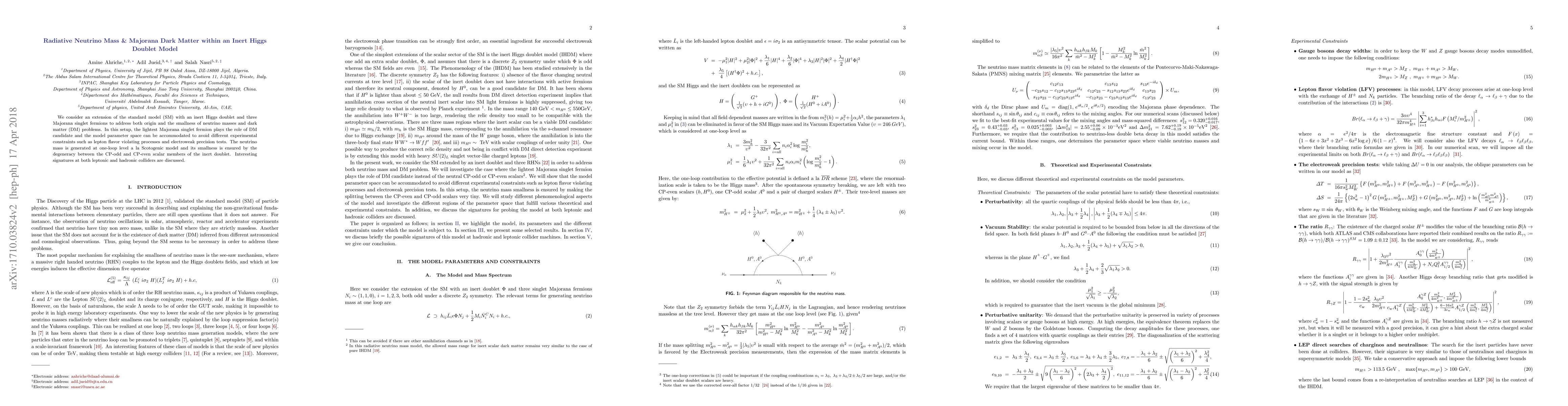 This paper extends the Standard Model with an inert Higgs doublet and Majorana singlet fermions to explain small neutrino masses and identify dark matter. The lightest Majorana singlet serves as the dark matter candidate, with neutrino masses generated at one-loop level, ensuring compatibility with experimental constraints and potential collider signatures.
