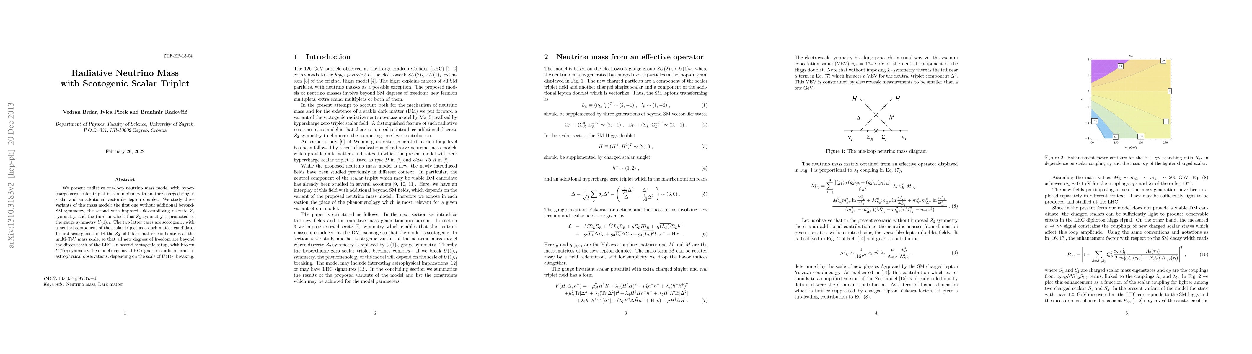 This paper explores a radiative neutrino mass model using a scalar triplet and additional scalars and leptons, examining three variants: a basic model, a Z_2 symmetric scotogenic model, and a gauged U(1)_D scotogenic model. The latter two may offer dark matter candidates and potential LHC signatures or astrophysical relevance.