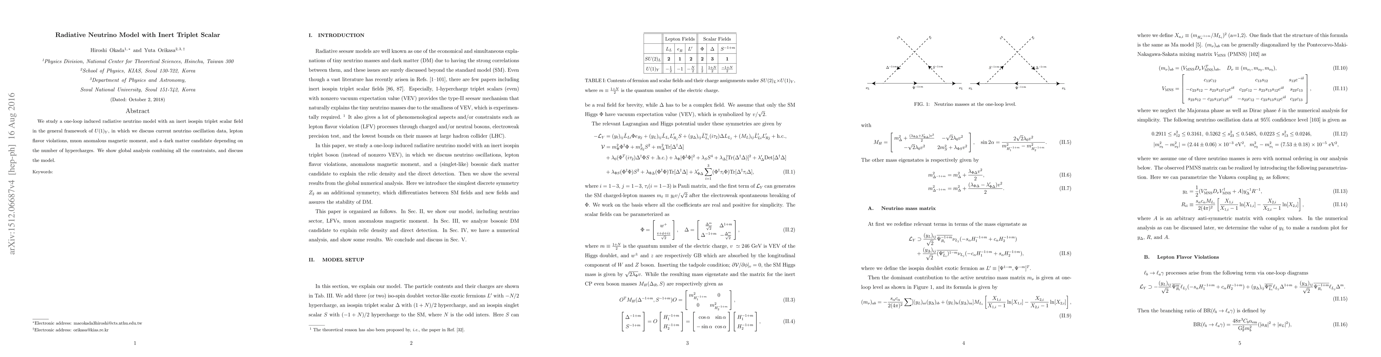 This paper explores a radiative neutrino model incorporating an inert triplet scalar, analyzing neutrino oscillation data, lepton flavor violations, muon anomalous magnetic moment, and a dark matter candidate, while performing a global analysis to combine all constraints. It also briefly considers an alternative possibility.