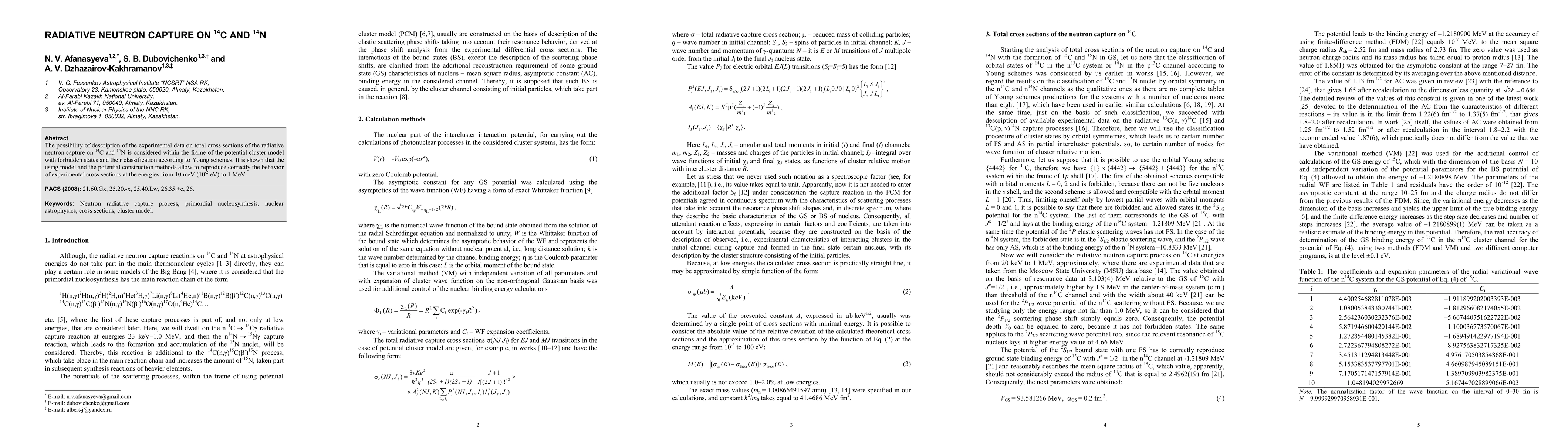 The possibility of description of the experimental data on total cross sections of the radiative neutron capture on 14C and 14N is considered within the frame of the potential cluster model with forbidden states and their classification according to Young schemes. It is shown that the using model and the potential construction methods allow to reproduce correctly the behavior of experimental cross sections at the energies from 10 meV (0.01 eV) to 1 MeV.