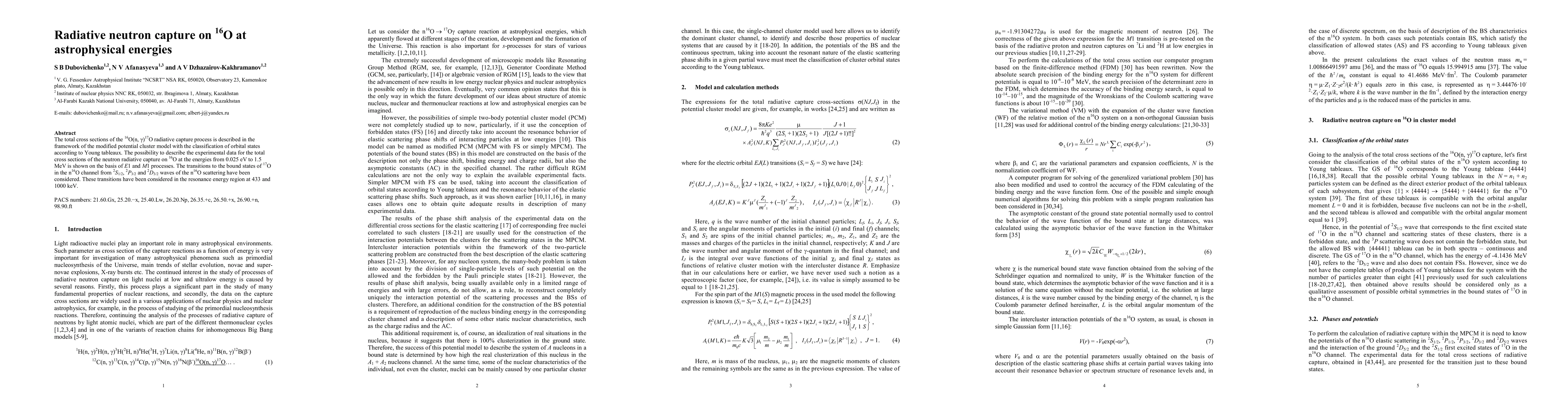 Researchers used a modified potential cluster model to describe the neutron capture process on 16O at astrophysical energies, successfully explaining total cross sections from 0.025 eV to 1.5 MeV through E1 and M1 processes.