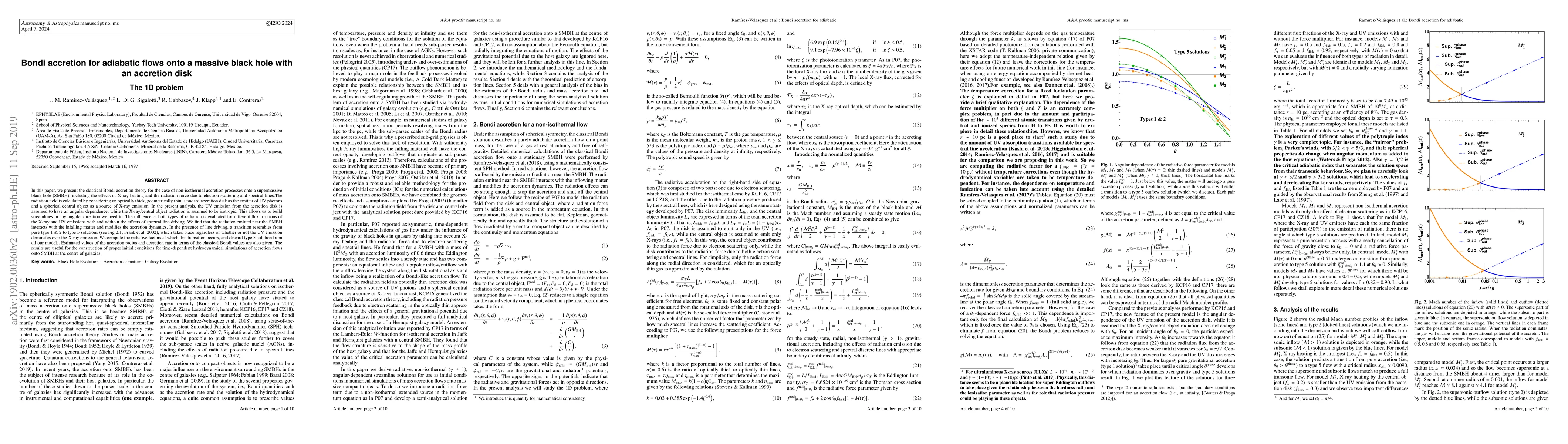 In this paper, we present the classical Bondi accretion theory for the case of non-isothermal accretion processes onto a supermassive black hole (SMBH), including the effects of X-ray heating and the radiation force due to electron scattering and spectral lines. The radiation field is calculated by considering an optically thick, geometrically thin, standard accretion disk as the emitter of UV photons and a spherical central object as a source of X-ray emission. In the present analysis, the UV emission from the accretion disk is assumed to have an angular dependence, while the X-ray/central object radiation is assumed to be isotropic. This allows us to build streamlines in any angular direction we need to. The influence of both types of radiation is evaluated for different flux fractions of the X-ray and UV emissions with and without the effects of spectral line driving. We find that the radiation emitted near the SMBH interacts with the infalling matter and modifies the accretion dynamics. In the presence of line driving, a transition resembles from pure type 1 & 2 to type 5 solutions (see Fig2.1 of Frank etal. 2002), which takes place regardless of whether or not the UV emission dominates over the X-ray emission. We compute the radiative factors at which this transition occurs, and discard type 5 solution from all our models. Estimated values of the accretion radius and accretion rate in terms of the classical Bondi values are also given. The results are useful for the construction of proper initial conditions for time-dependent hydrodynamical simulations of accretion flows onto SMBH at the centre of galaxies.