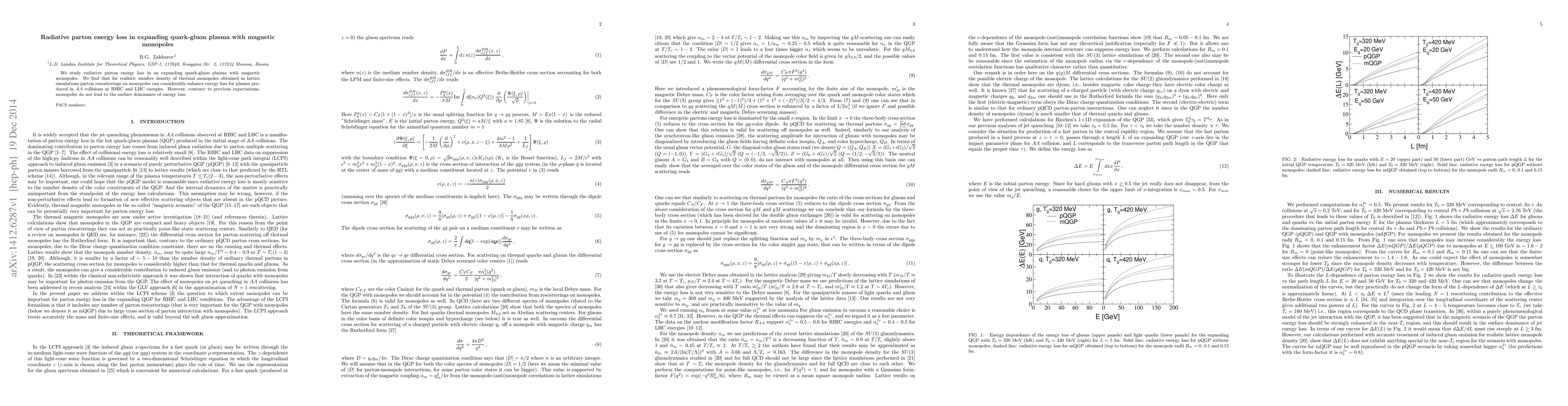 Summary: This study investigates radiative energy loss in an expanding quark-gluon plasma with magnetic monopoles, revealing that monopole interactions significantly boost energy loss in heavy-ion collisions, contrary to the anticipated surface dominance effect.