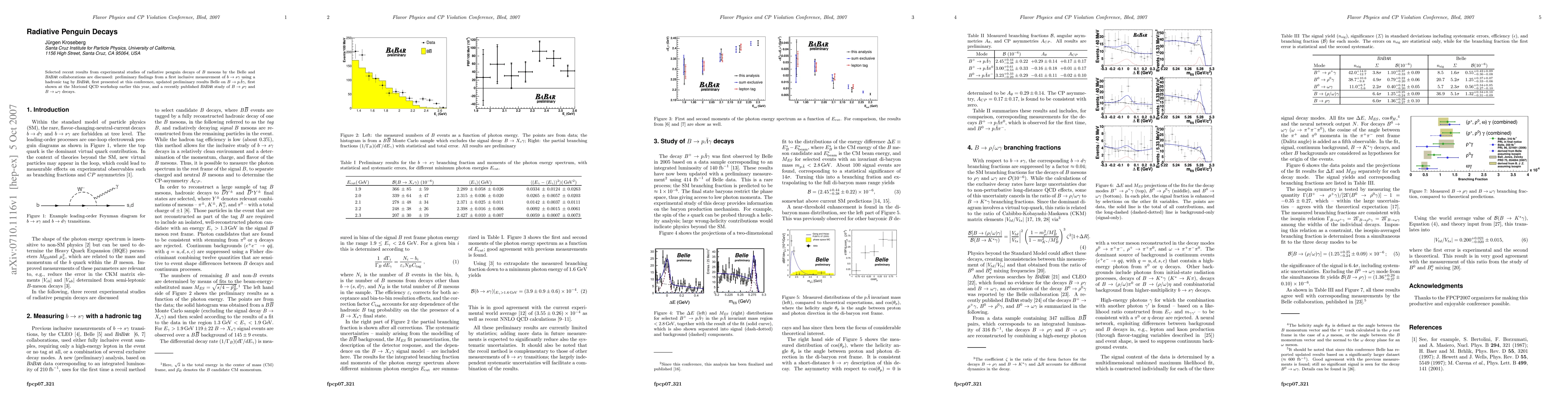 This study examines recent experimental findings from the Belle and BaBar collaborations on radiative penguin decays of B mesons, providing insights into their decay mechanisms and contributing to our understanding of CP violation and flavor physics.