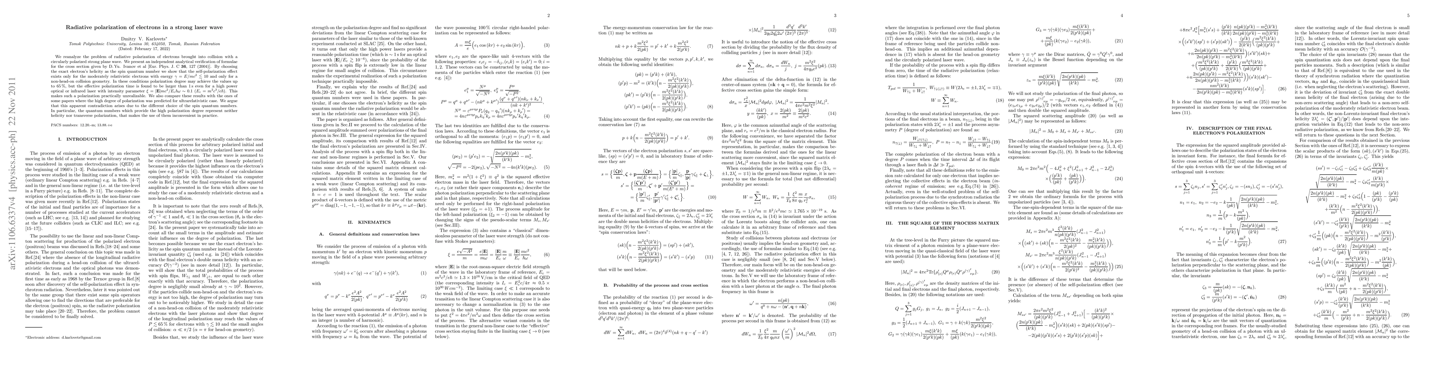 This paper reanalyzes the radiative polarization of electrons in a strong circularly polarized laser wave, verifying existing cross-section formulae. It finds that significant polarization (up to 65%) is only feasible for moderately relativistic electrons and non-head-on collisions, but the required polarization time is impractically long for current high-power lasers.