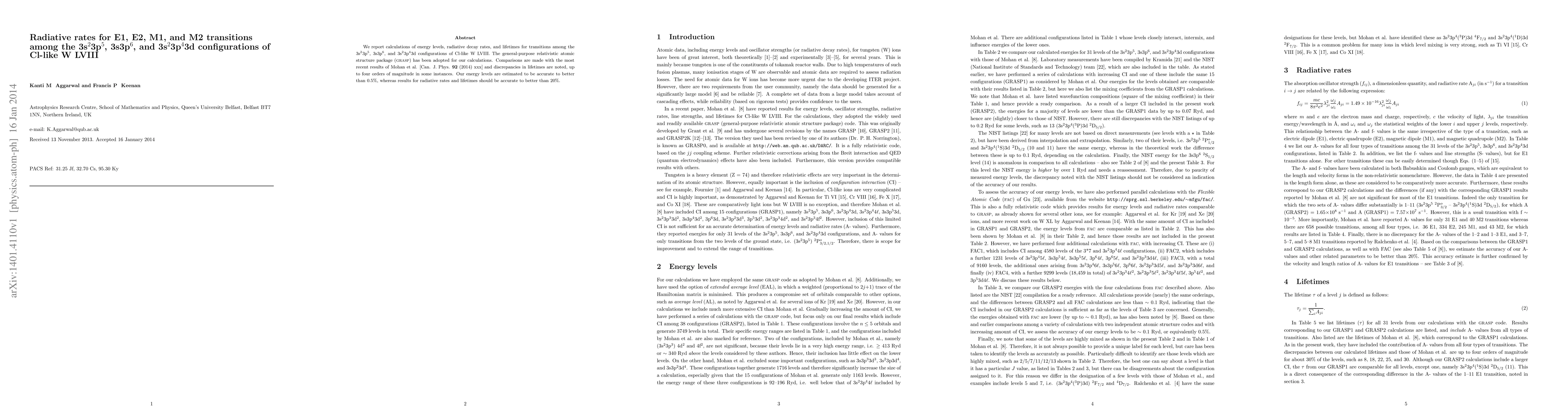 Researchers calculated radiative decay rates for Cl-like W LVIII with various electron configurations, finding discrepancies up to four orders of magnitude in some cases.