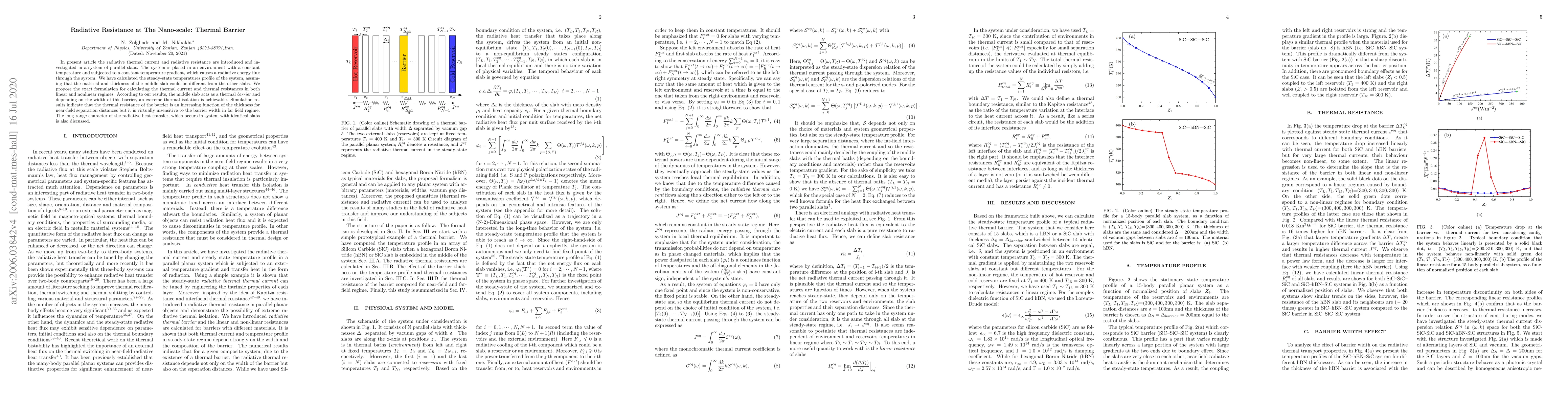 Researchers investigate radiative thermal current and resistance in parallel slabs under constant temperature conditions, finding that a middle slab can act as a thermal barrier to achieve extreme thermal isolation.