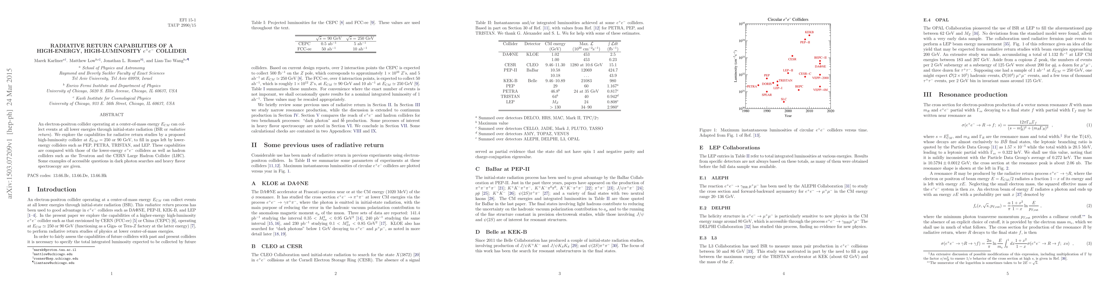 This paper investigates the potential of a high-energy, high-luminosity electron-positron collider operating at 250 or 90 GeV to study radiative return events, filling gaps left by previous lower-energy colliders. It compares these capabilities with those of existing lower-energy colliders and hadron colliders, highlighting applications in dark photon searches and heavy flavor spectroscopy.