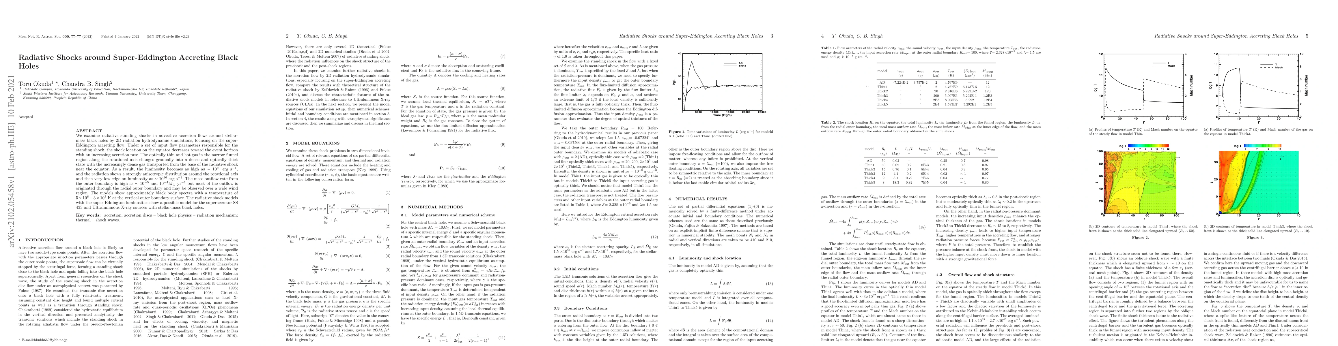 This paper investigates radiative standing shocks in super-Eddington accreting black holes via 2D simulations, revealing that shock location decreases with higher accretion rates, leading to anisotropic luminosity and high mass outflow rates. The models suggest these phenomena could explain superaccretors like SS 433 and Ultraluminous X-ray sources.