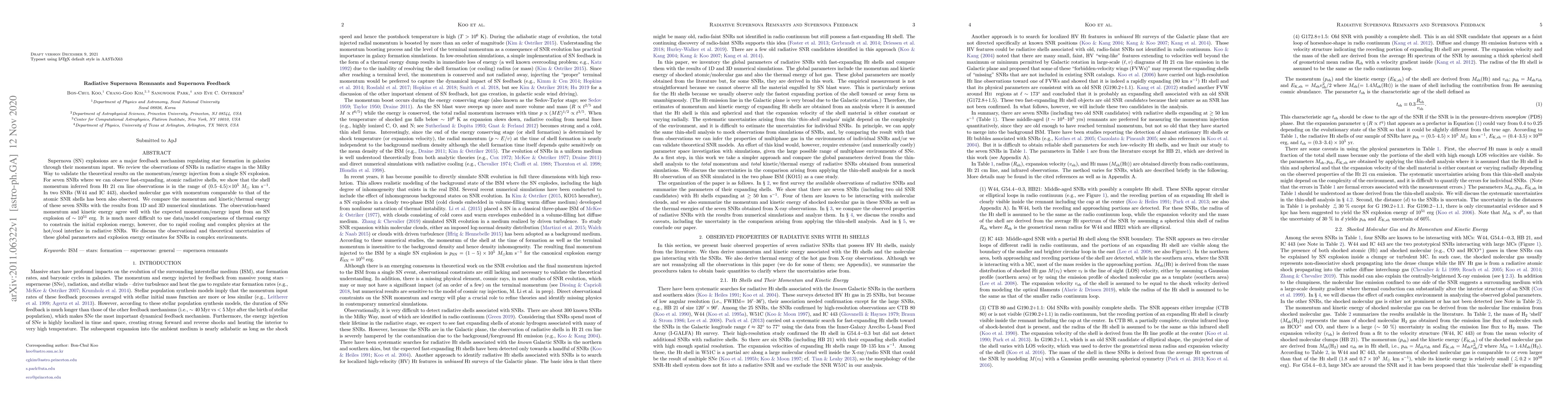 This paper reviews observations of radiative supernova remnants (SNRs) in the Milky Way to validate theoretical models of supernova feedback, finding that inferred shell momentum aligns with expected values from single SN explosions. Challenges in using thermal energy data to constrain initial explosion energy due to cooling and complex physics are also discussed.