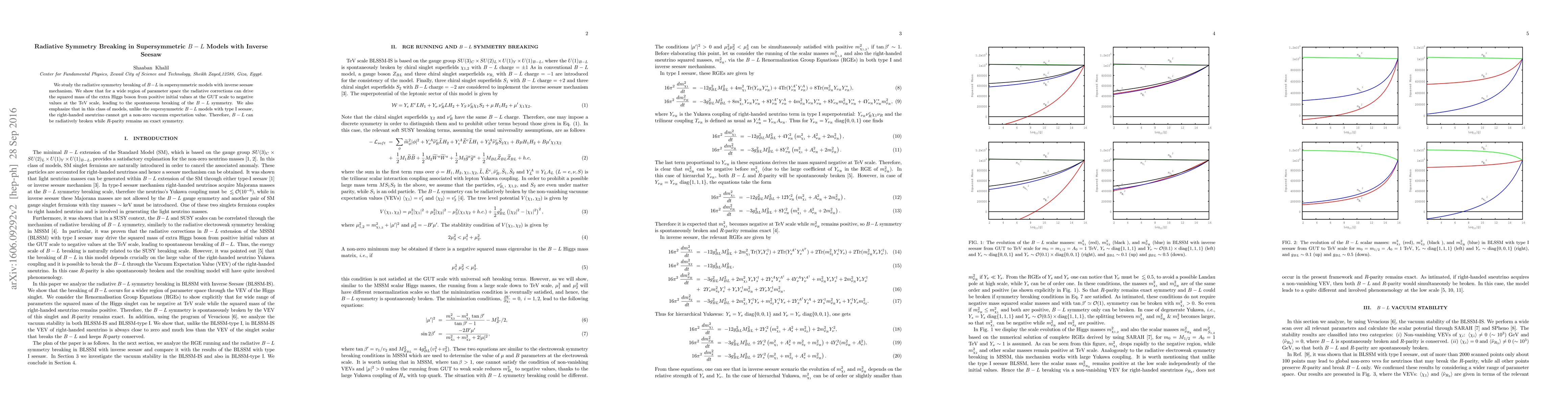 This paper investigates radiative symmetry breaking of B-L in supersymmetric models with the inverse seesaw mechanism, demonstrating that radiative corrections can induce spontaneous B-L symmetry breaking at the TeV scale while maintaining exact R-parity. Unlike type I seesaw models, the right-handed sneutrino does not acquire a vacuum expectation value in these models.