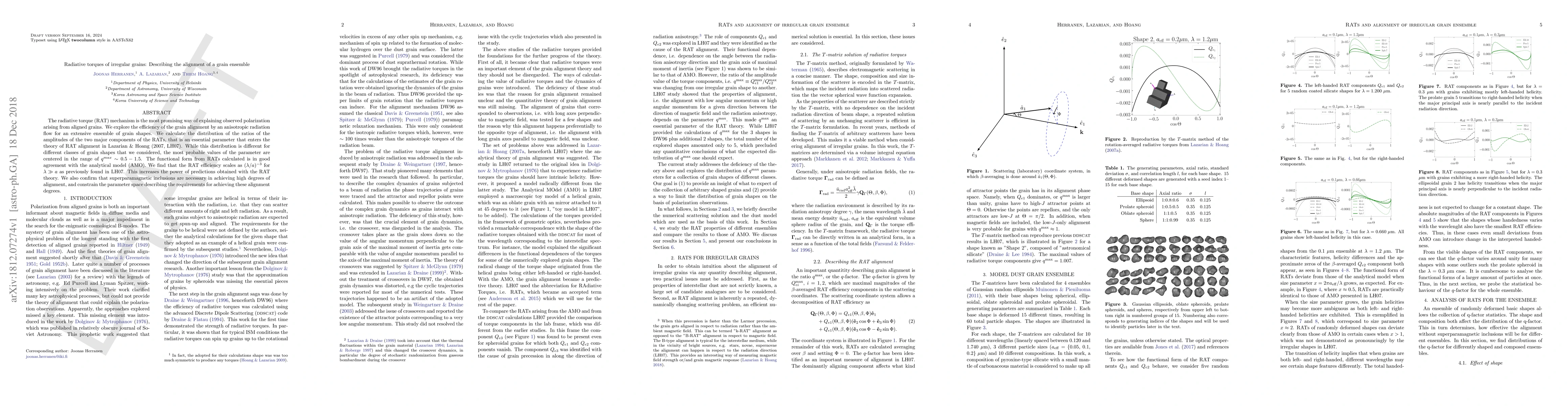 The radiative torque (RAT) mechanism is the most promising way of explaining observed polarization arising from aligned grains. We explore the efficiency of the grain alignment by an anisotropic radiation flow for an extensive ensemble of grain shapes. We calculate the distribution of the ratios of the amplitudes of the two major components of the RATs, that is an essential parameter that enters the theory of RAT alignment in Lazarian & Hoang (2007, LH07). While this distribution is different for different classes of grain shapes that we considered, the most probable values of the parameter are centered in the range of $q^{max}\sim 0.5-1.5$. The functional form from RATs calculated is in good agreement with the analytical model (AMO). We find that the RAT efficiency scales as $(\lambda/a)^{-3}$ for $\lambda\gg a$ as previously found in LH07. This increases the power of predictions obtained with the RAT theory. We also confirm that superparamagnetic inclusions are necessary in achieving high degrees of alignment, and constrain the parameter space describing the requirements for achieving these alignment degrees.