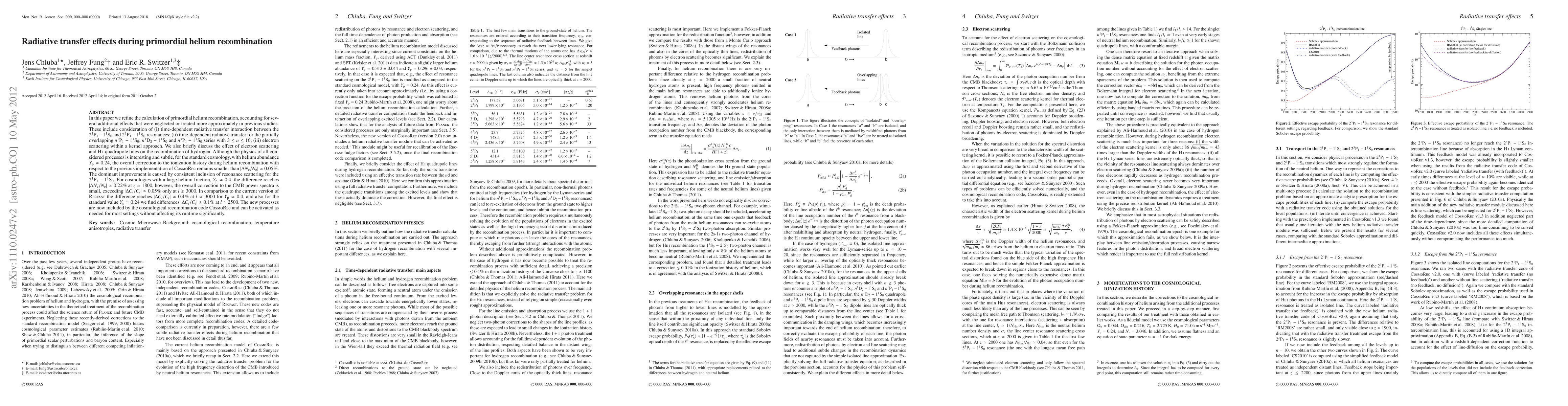 This paper refines the calculation of primordial helium recombination by incorporating detailed radiative transfer effects, including resonance scattering and electron scattering, which were previously neglected or approximated. The improvements are minor for standard cosmology but more significant for cosmologies with a large helium fraction, affecting the CMB power spectrum at high multipoles.