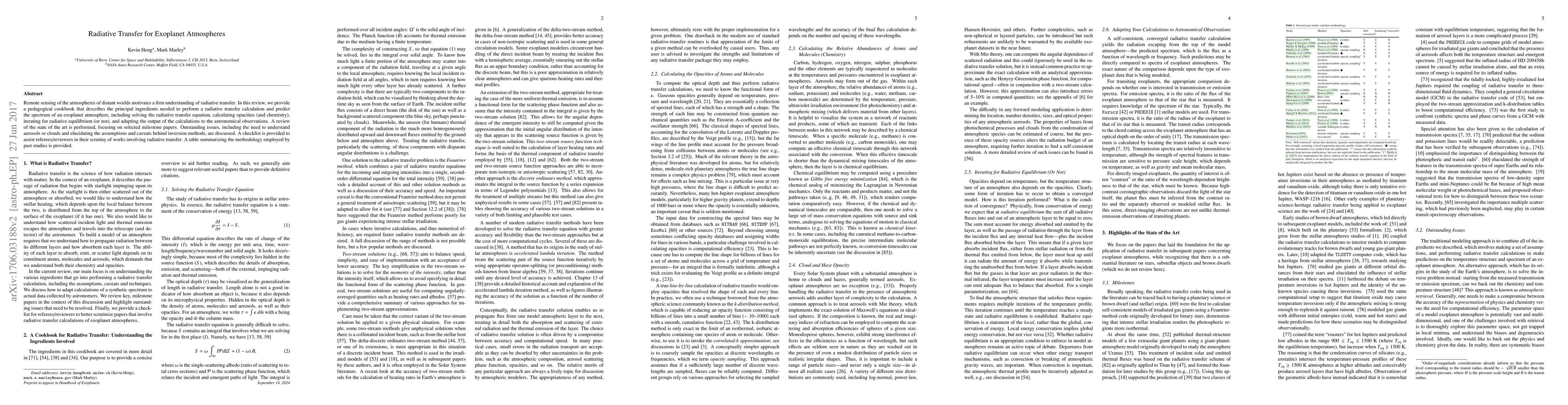 This paper reviews the fundamental principles and methods for radiative transfer in exoplanet atmospheres, offering a comprehensive guide to calculating spectra and addressing current challenges like aerosols and inversion techniques. It also includes a checklist for reviewers and a table summarizing past methodologies.