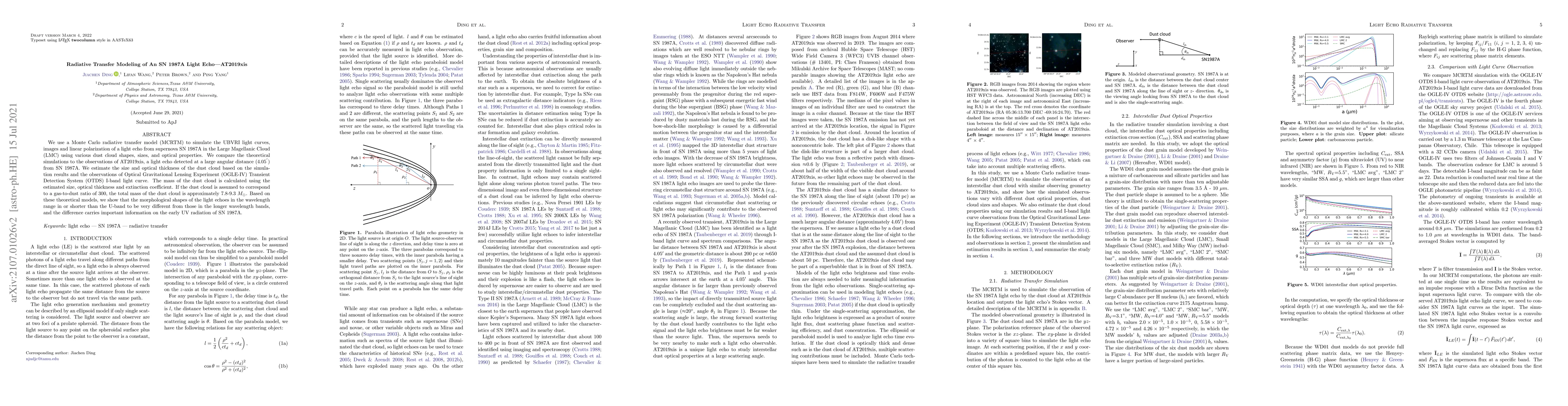 Researchers used a computer model to simulate light echoes from supernova SN 1987A and compared them to observations of AT2019xis, finding that the shape of the echoes varies depending on wavelength and providing insight into the early UV radiation of the explosion.