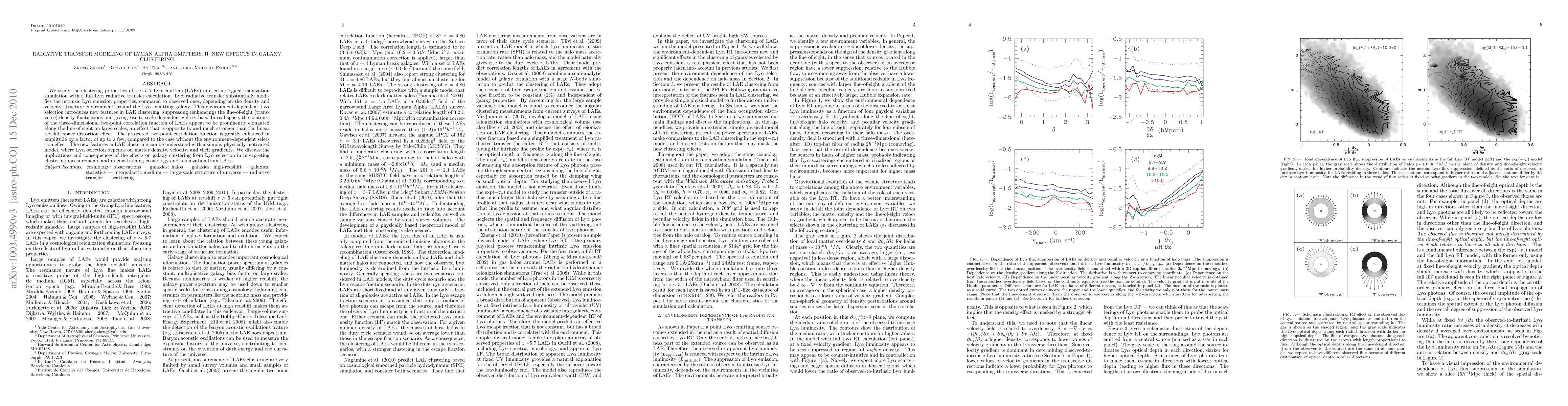 This paper investigates the clustering properties of high-redshift Lyman-alpha emitters (LAEs) in a cosmological simulation, revealing that Lyα radiative transfer alters LAE emission properties and introduces new clustering features. These features include enhanced transverse and suppressed line-of-sight density fluctuations, leading to scale-dependent galaxy bias and significant distortions in real space galaxy clustering measurements.