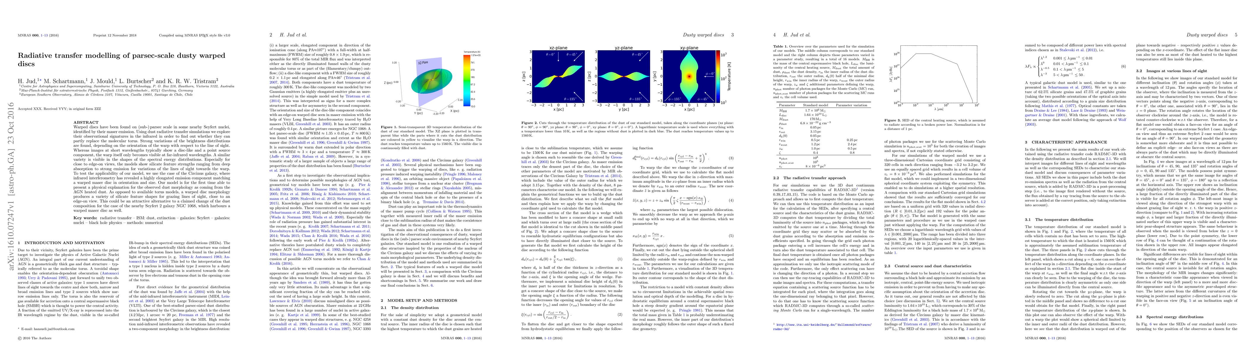 Warped discs have been found on (sub-)parsec scale in some nearby Seyfert nuclei, identified by their maser emission. Using dust radiative transfer simulations we explore their observational signatures in the infrared in order to find out whether they can partly replace the molecular torus. Strong variations of the brightness distributions are found, depending on the orientation of the warp with respect to the line of sight. Whereas images at short wavelengths typically show a disc-like and a point source component, the warp itself only becomes visible at far-infrared wavelengths. A similar variety is visible in the shapes of the spectral energy distributions. Especially for close to edge-on views, the models show silicate feature strengths ranging from deep absorption to strong emission for variations of the lines of sight towards the warp. To test the applicability of our model, we use the case of the Circinus galaxy, where infrared interferometry has revealed a highly elongated emission component matching a warped maser disc in orientation and size. Our model is for the first time able to present a physical explanation for the observed dust morphology as coming from the AGN heated dust. As opposed to available torus models, a warped disc morphology produces a variety of silicate feature shapes for grazing lines of sight, close to an edge-on view. This could be an attractive alternative to a claimed change of the dust composition for the case of the nearby Seyfert 2 galaxy NGC 1068, which harbours a warped maser disc as well.
