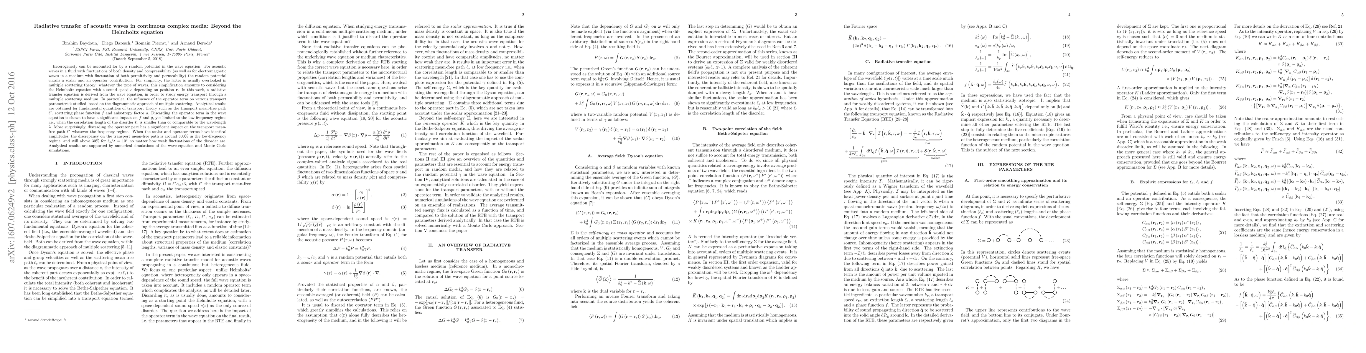Heterogeneity can be accounted for by a random potential in the wave equation. For acoustic waves in a fluid with fluctuations of both density and compressibility (as well as for electromagnetic waves in a medium with fluctuation of both permittivity and permeability) the random potential entails a scalar and an operator contribution. For simplicity, the latter is usually overlooked in multiple scattering theory: whatever the type of waves, this simplification amounts to considering the Helmholtz equation with a sound speed $c$ depending on position $\mathbf{r}$. In this work, a radiative transfer equation is derived from the wave equation, in order to study energy transport through a multiple scattering medium. In particular, the influence of the operator term on various transport parameters is studied, based on the diagrammatic approach of multiple scattering. Analytical results are obtained for fundamental quantities of transport theory such as the transport mean-free path $\ell^*$, scattering phase function $f$ and anisotropy factor $g$. Discarding the operator term in the wave equation is shown to have a significant impact on $f$ and $g$, yet limited to the low-frequency regime i.e., when the correlation length of the disorder $\ell_c$ is smaller than or comparable to the wavelength $\lambda$. More surprisingly, discarding the operator part has a significant impact on the transport mean-free path $\ell^*$ whatever the frequency regime. When the scalar and operator terms have identical amplitudes, the discrepancy on the transport mean-free path is around $300\,\%$ in the low-frequency regime, and still above $30\,\%$ for $\ell_c/\lambda=10^3$ no matter how weak fluctuations of the disorder are. Analytical results are supported by numerical simulations of the wave equation and Monte Carlo simulations.