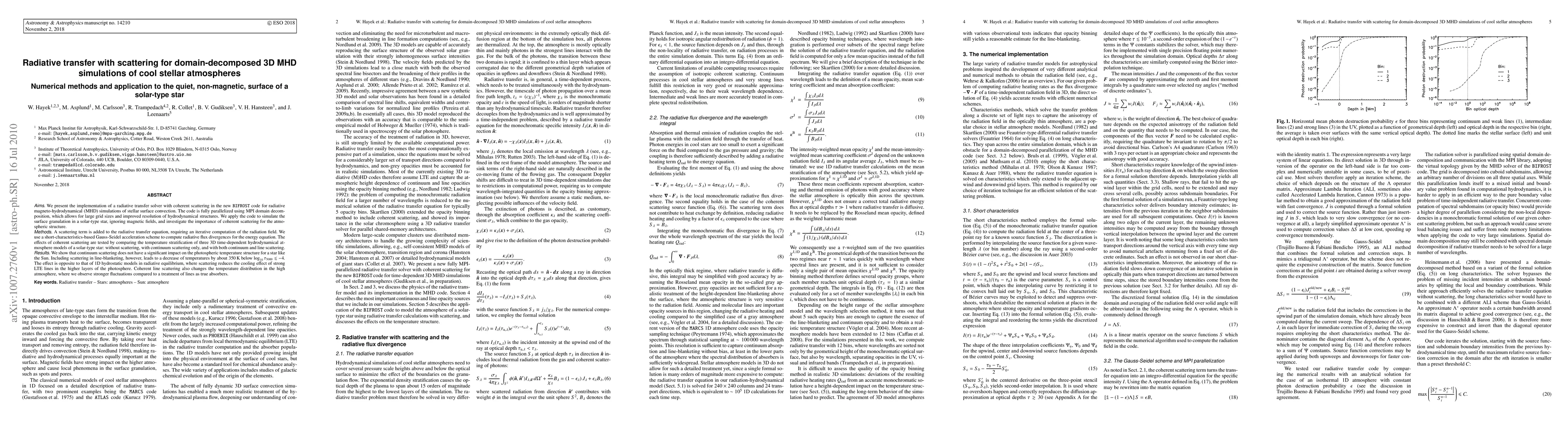 This paper introduces a new parallelized radiative transfer solver with coherent scattering in the BIFROST code for 3D MHD simulations of stellar atmospheres. It finds that while continuum scattering has minimal impact on solar-type star photospheres, line scattering significantly reduces temperatures and alters the temperature distribution, especially in the high atmosphere.